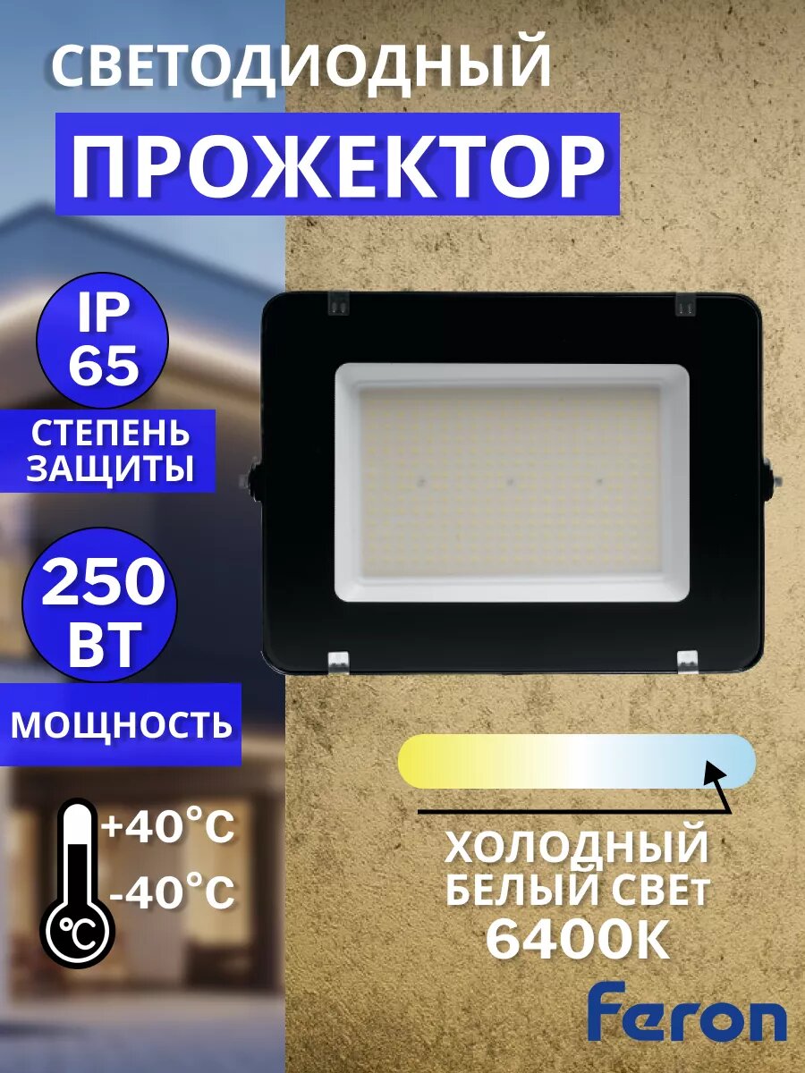 Купить Светодиодный прожектор Feron LL-925, 250 Вт, IP65, уличный, 6400К, черный