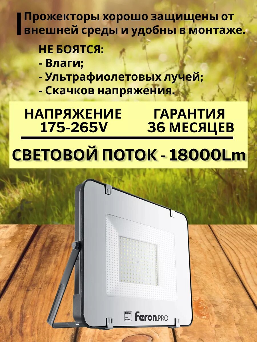 Светодиодный прожектор Feron LL-923, 150 Вт, IP65, уличный, 6400К, черный