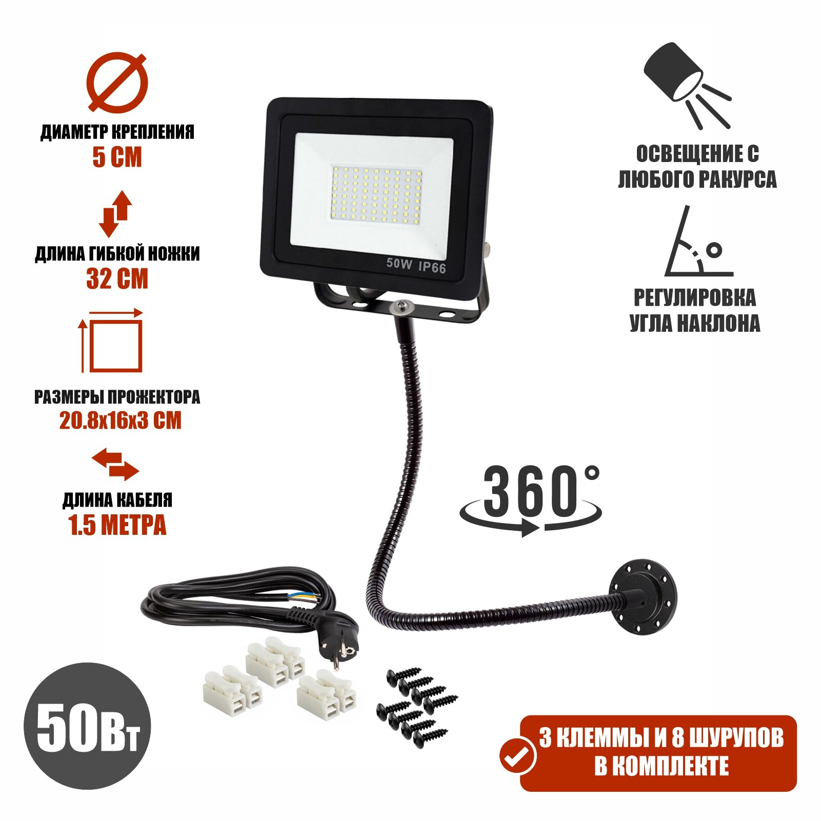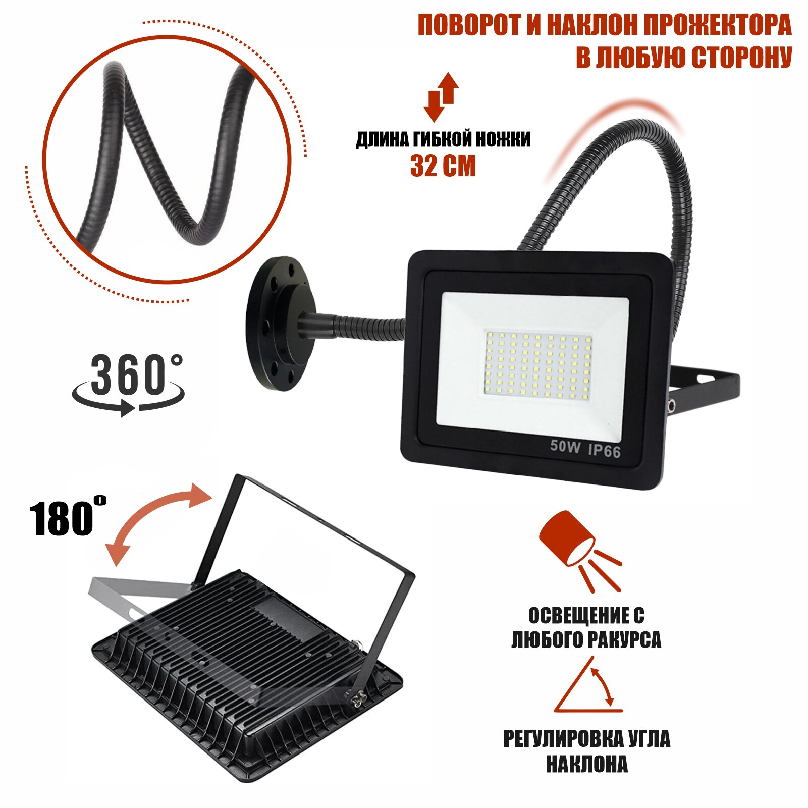 Прожектор светодиодный 50Вт на настенном гибком креплении FLAN-GDS интересное: