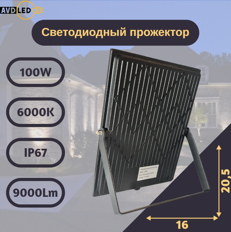 Светодиодный уличный прожектор "Eco" 100вт Ip66 AVD-LED интересное: