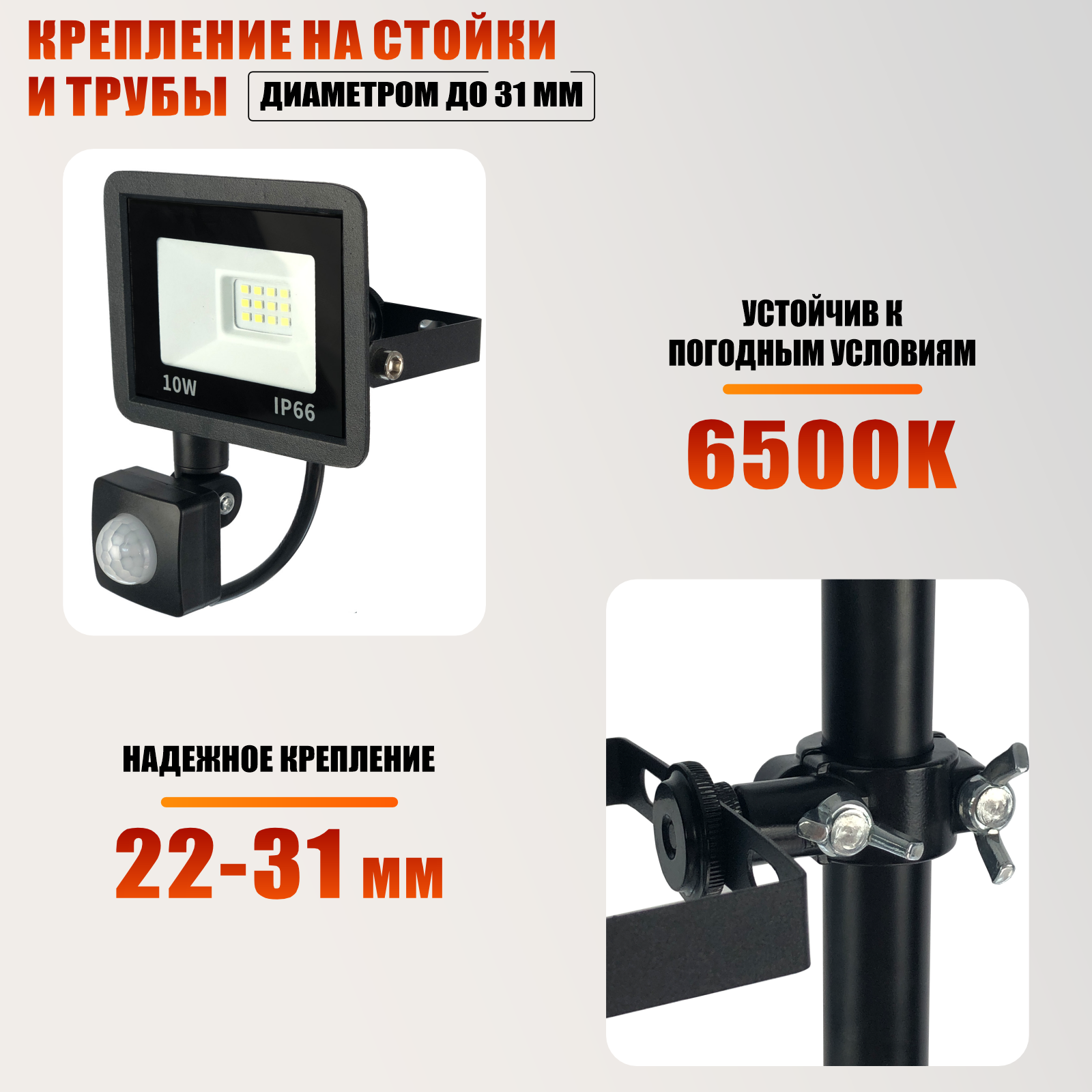 Прожектор 10 Вт с датчиком движения на кронштейне с зажимом до 31 мм интересное: