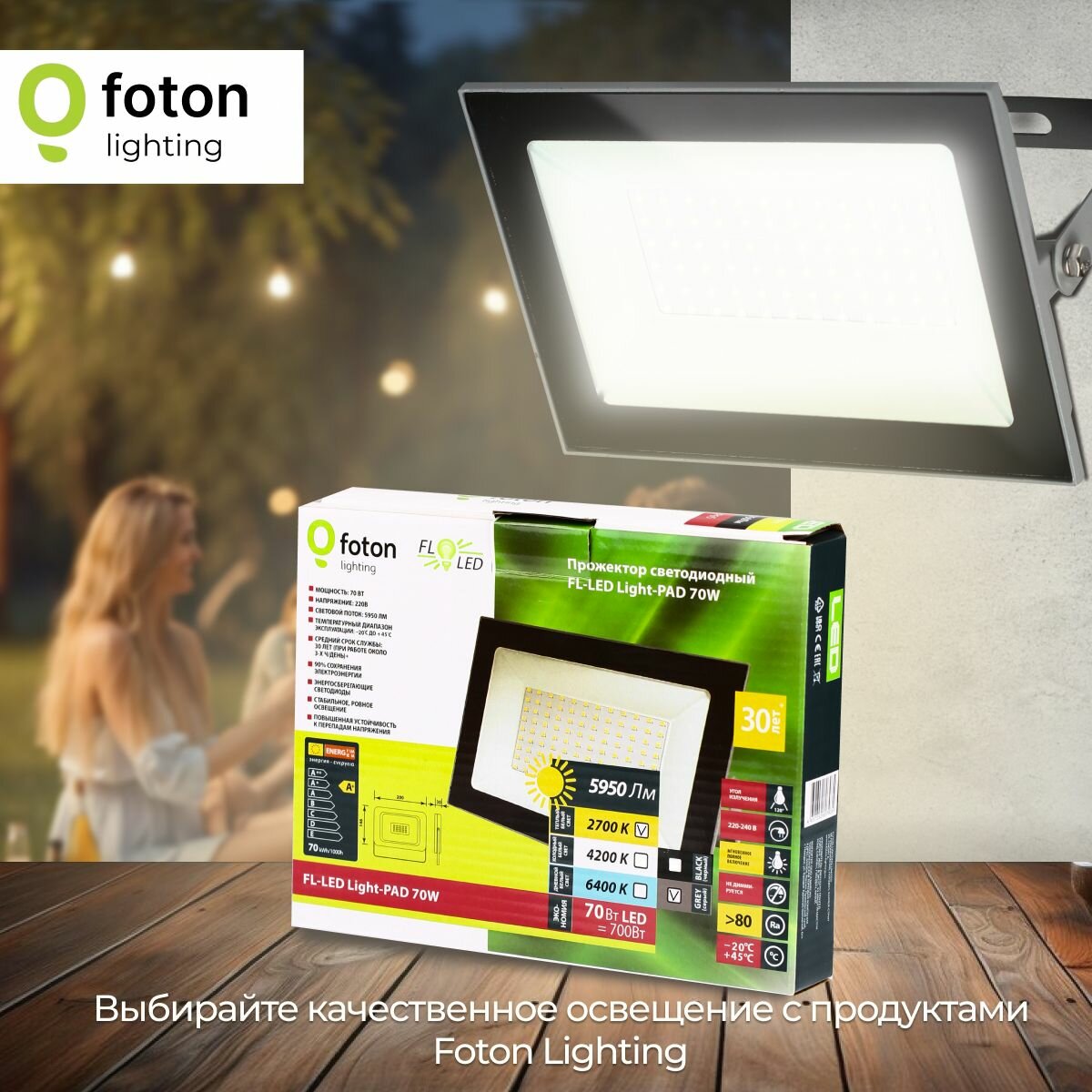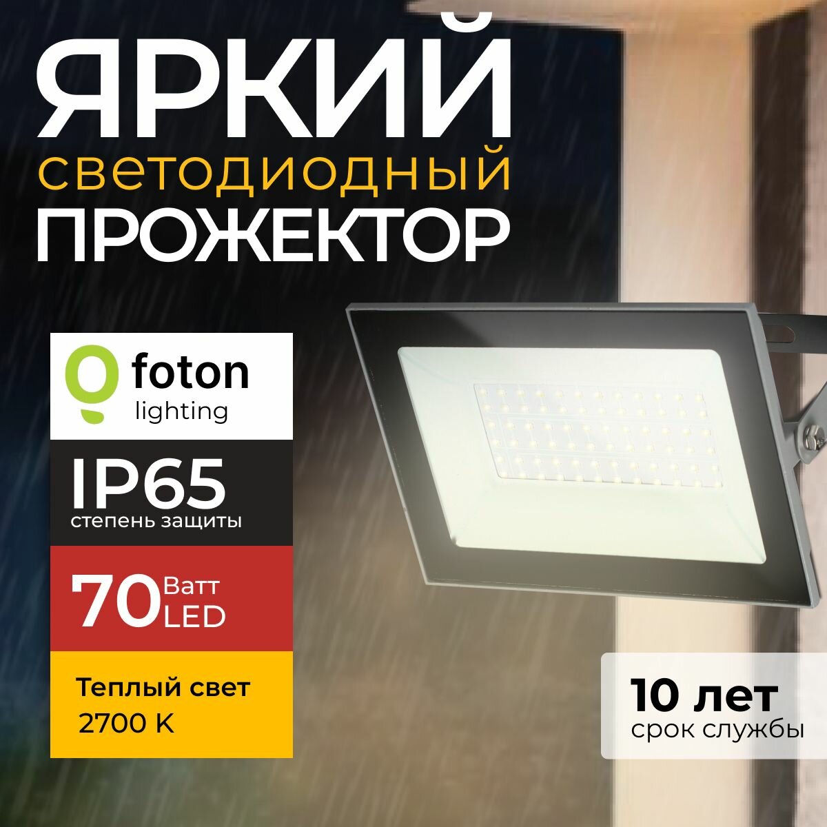 Прожектор светодиодный уличный FL-LED Light-PAD 70 Ватт 2700K теплый свет, фонарь для освещения, серый корпус 7000лм IP65 Foton Lighting, набор 1шт. интересное: