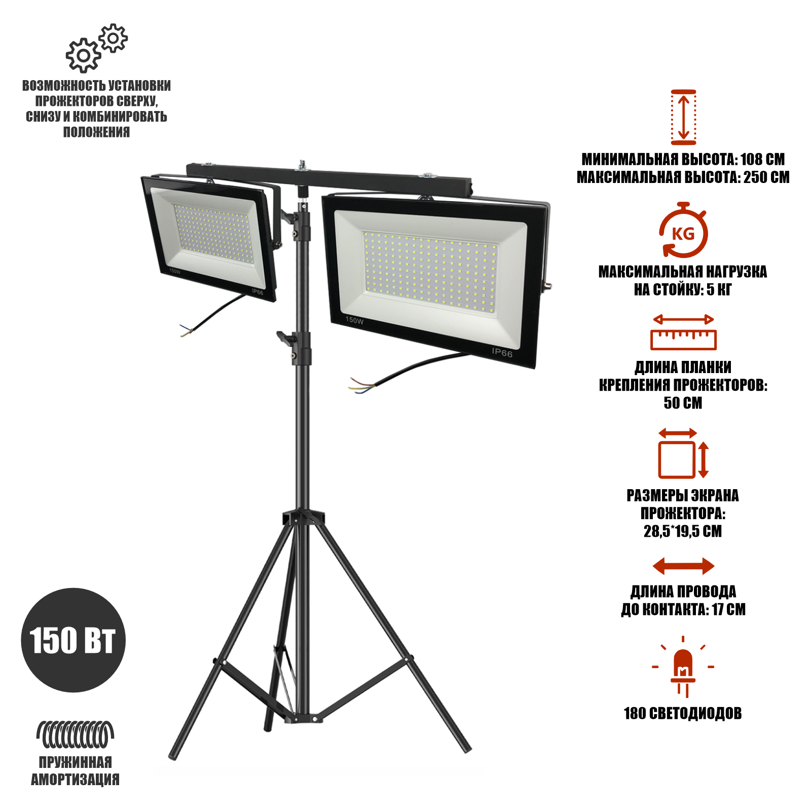 Прожекторы светодиодные 150 Вт, 2 шт, на строительном штативе BHS-PRJ-50 интересное: