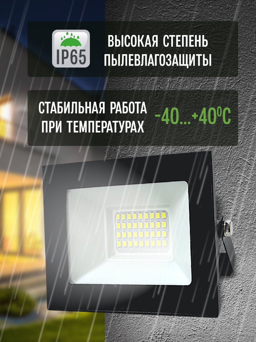 Прожектор светодиодный уличный 50Вт 6500К IP65 Черный корпус / Фонарь уличный интересное: