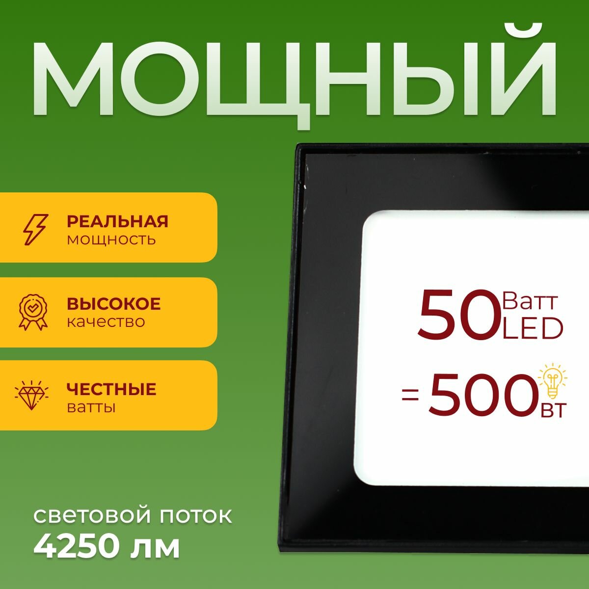 Прожектор LEDS POWER светодиодный (серия E027 пластик), IP65, 6000K, 50 Вт, светильник/фонарь уличный/внутренний