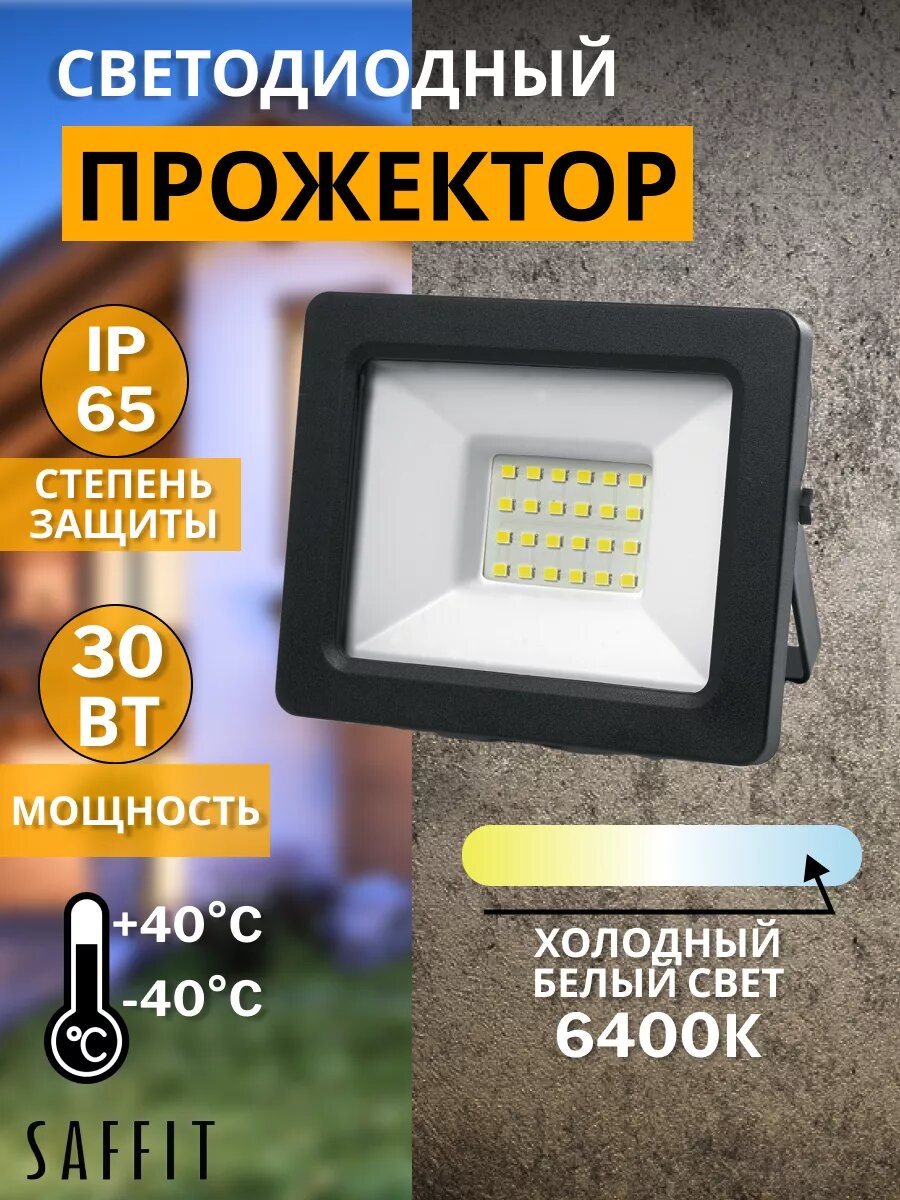 СохранитьСветодиодный прожектор SAFFIT SFL90-30, 30 Вт, IP65, уличный, 6400К, черный интересное: