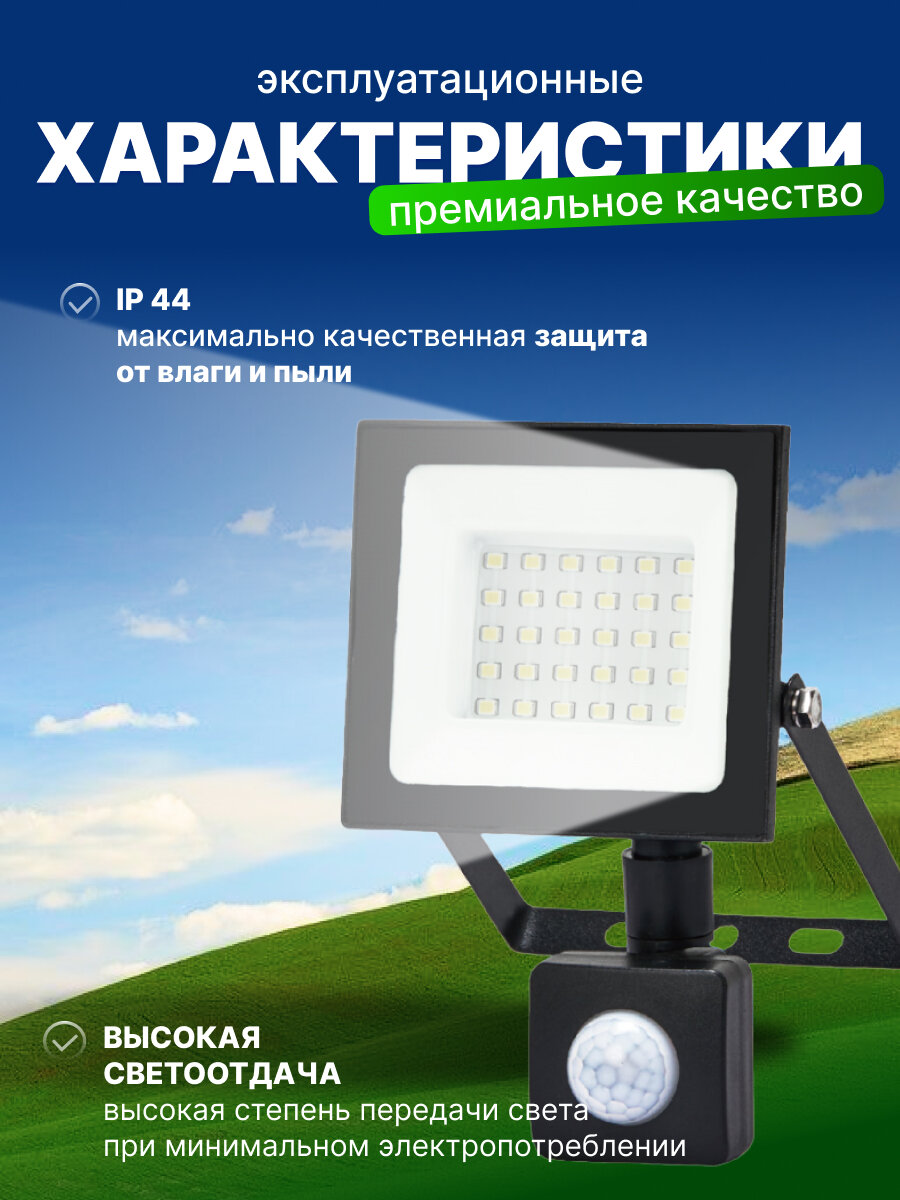 Прожектор светодиодный 50вт с датчиком движения Kronus 50Вт 6500K холодный свет 220V
