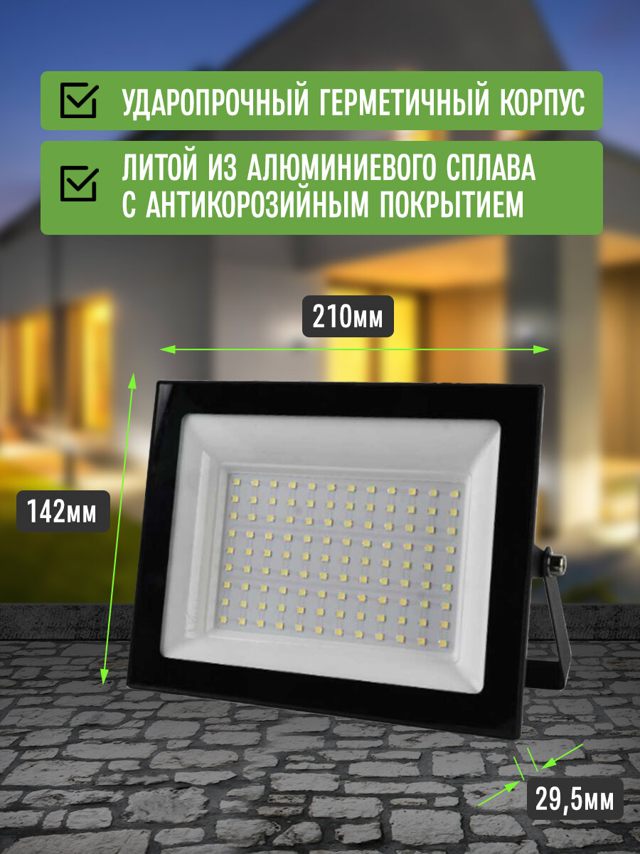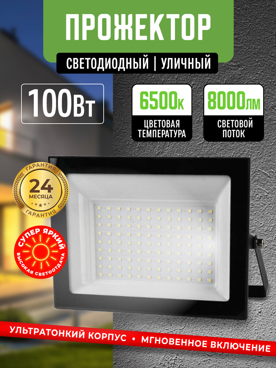 Прожектор светодиодный уличный 100Вт 6500К IP65 Черный корпус / Фонарь уличный интересное: