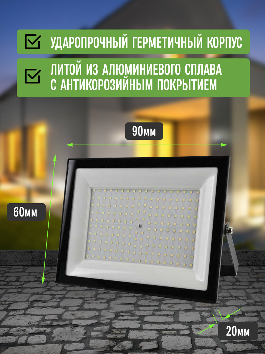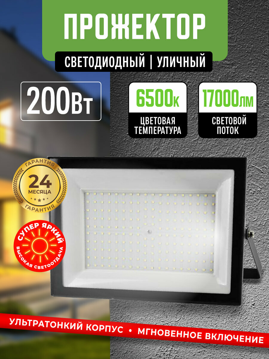 Прожектор светодиодный уличный 200Вт 6500К IP65 Черный корпус / Фонарь уличный интересное: