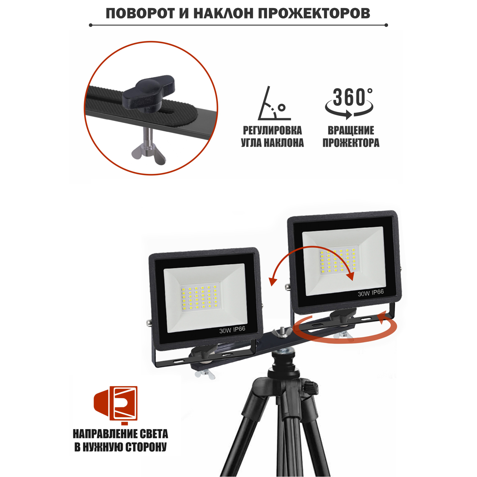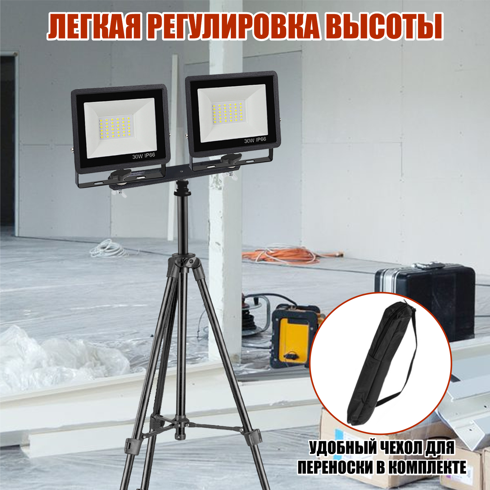 Прожекторы светодиодные 30Вт, 2 шт, на штативе строительном 8810-PRJ-PL2V элевационном интересное: