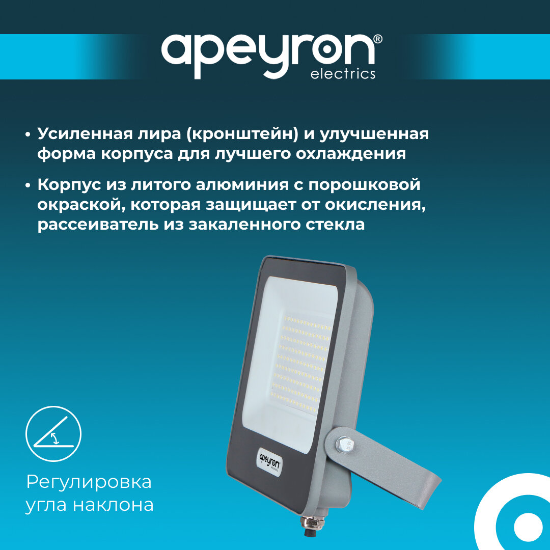 Прожектор светодиодный Apeyron 05-47, 50Вт, 230В/50Гц, 6000лм, 6500К, IP65, 179х32х139, алюминий, серый