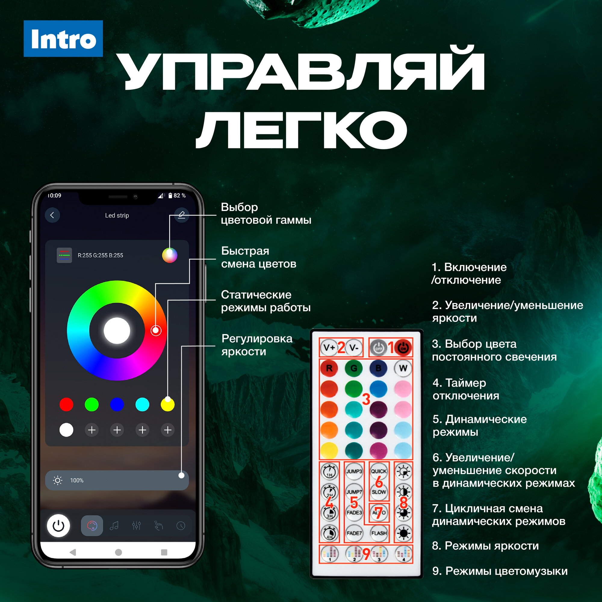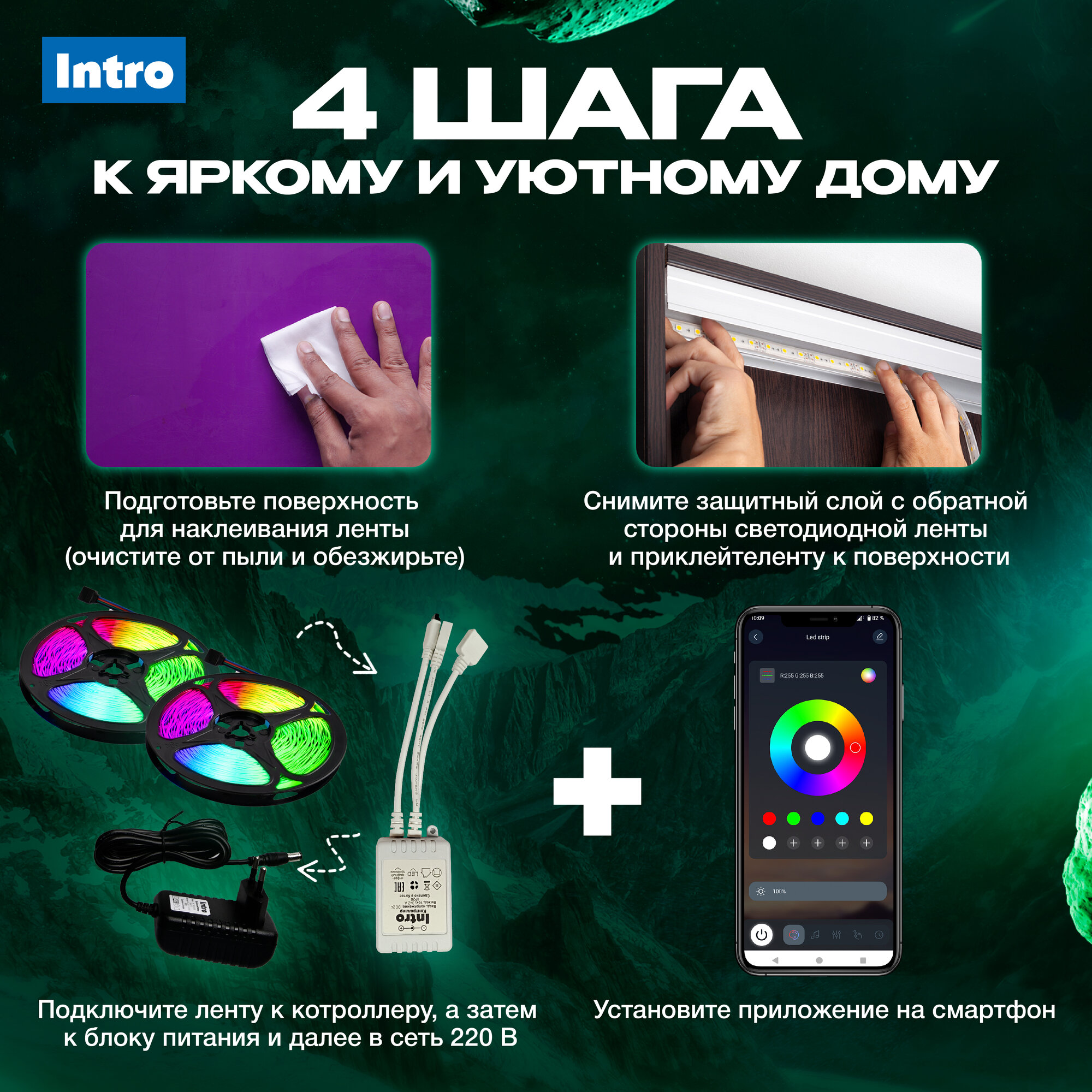 Светодиодная лента Intro 5050Kit, с контроллером, многоцветная, RGB, 20м