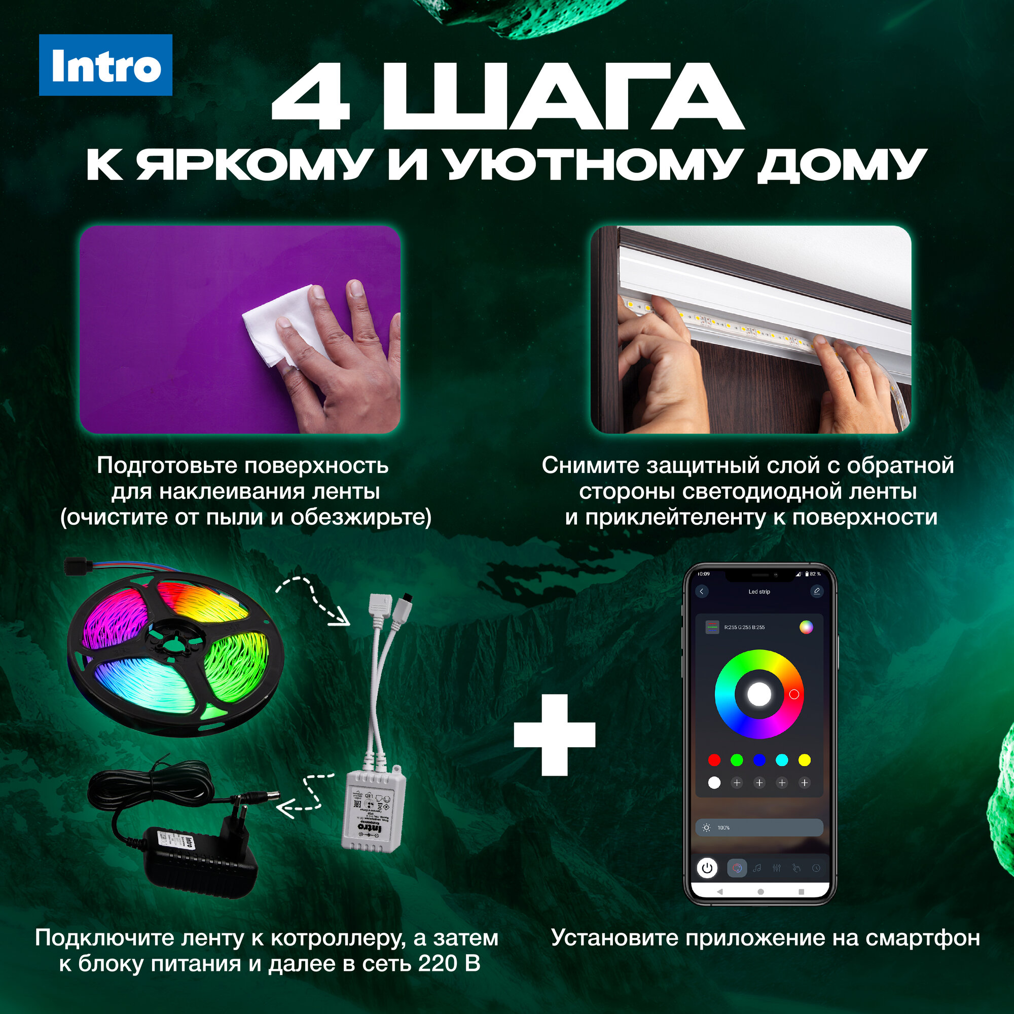 Светодиодная лента Intro 5050Kit, с контроллером, многоцветная, RGB, 20м