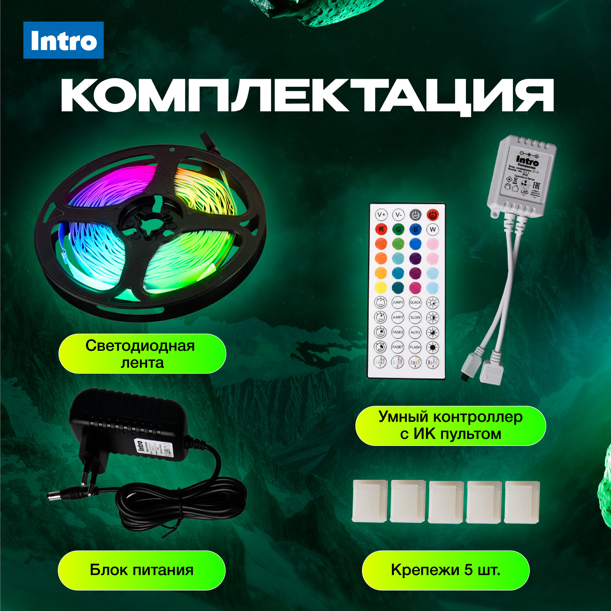 Ниже Вы можете прочитать отзывы на Светодиодная лента с контроллером Intro 5050Kit -16-24V-IP20-RGB многоцветная 10м, ознакомится с подробными характеристиками, посмотреть интересные обзоры и фотографии на Светодиодная лента с контроллером Intro 5050Kit -16-24V-IP20-RGB многоцветная 10м.