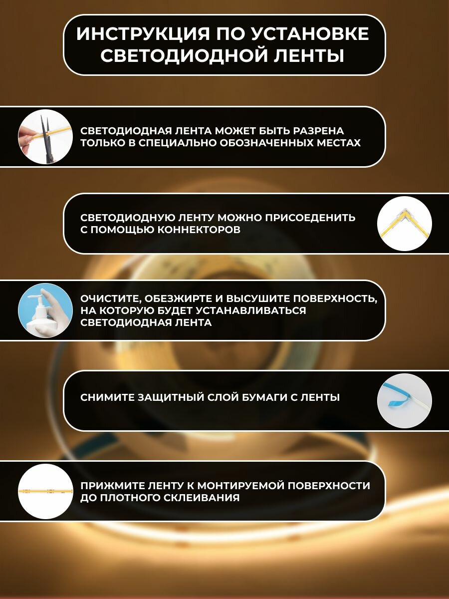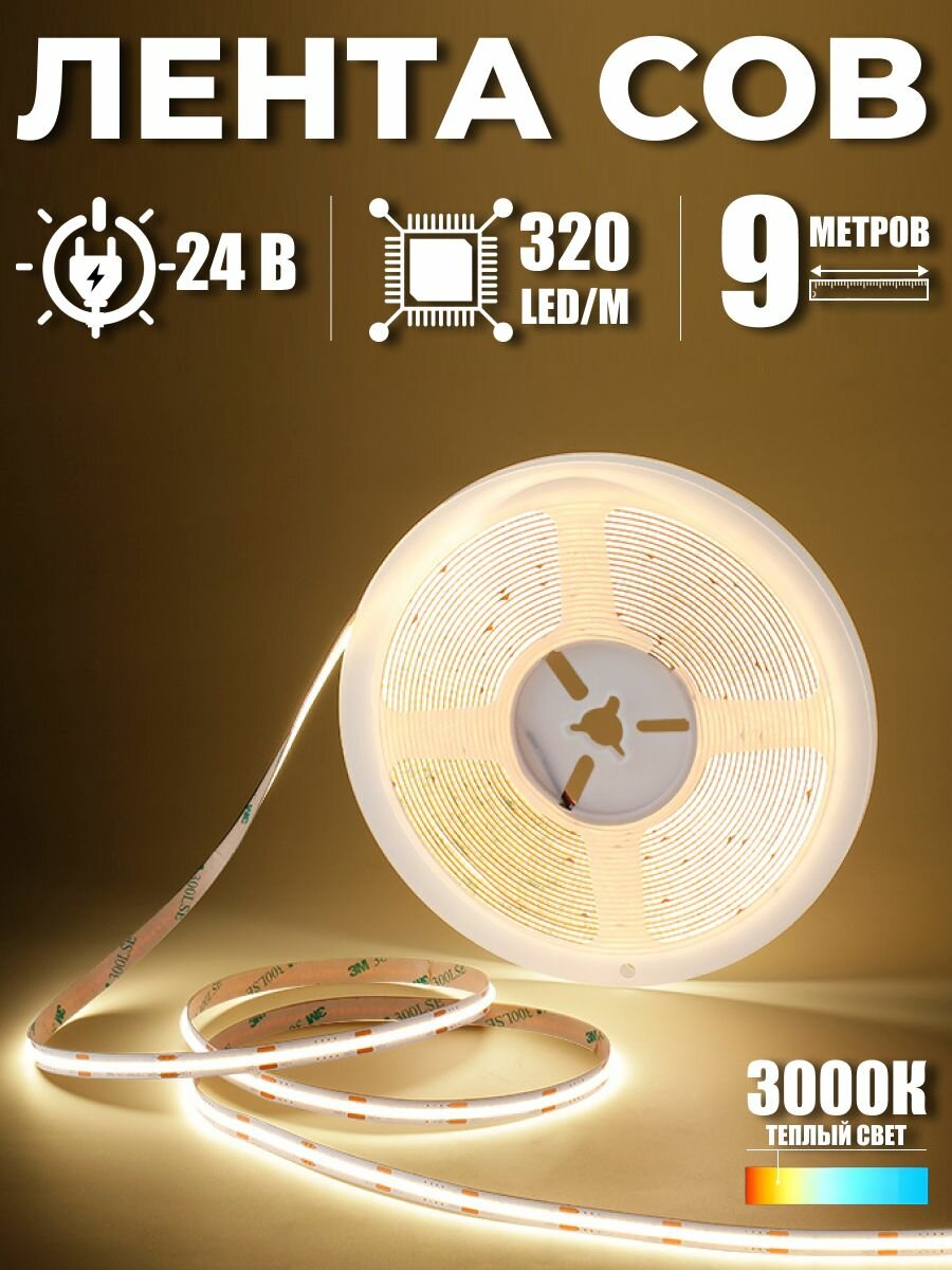 Светодиодная лента COB, теплый белый свет, 9 метров, 24V, 12W, LED 320/м интересное: