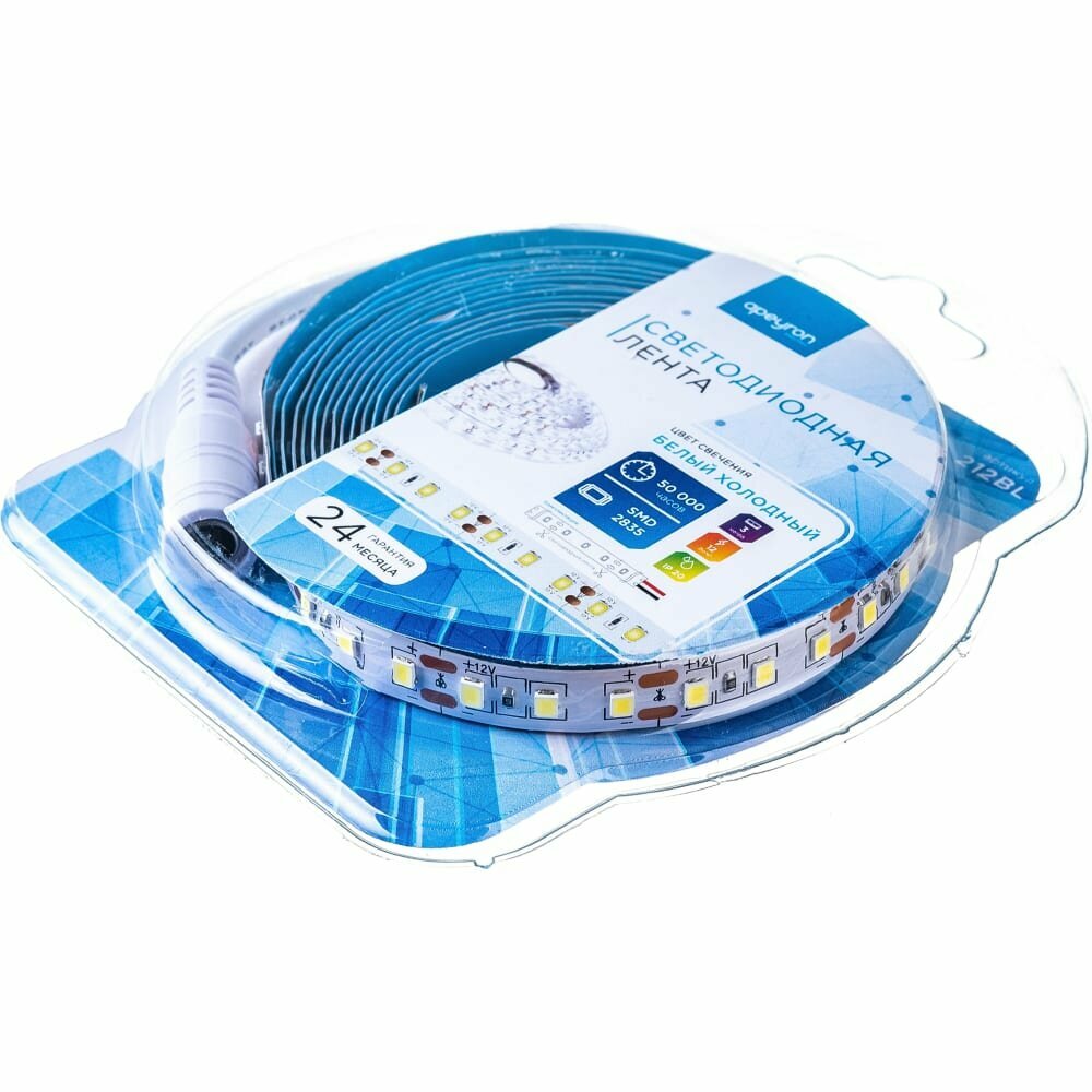 Яркая светодиодная лента в блистере Apeyron 04BL 12В, 120 градусов/ 60д/м, 4,8Вт/м, smd3528, IP65, 5 м