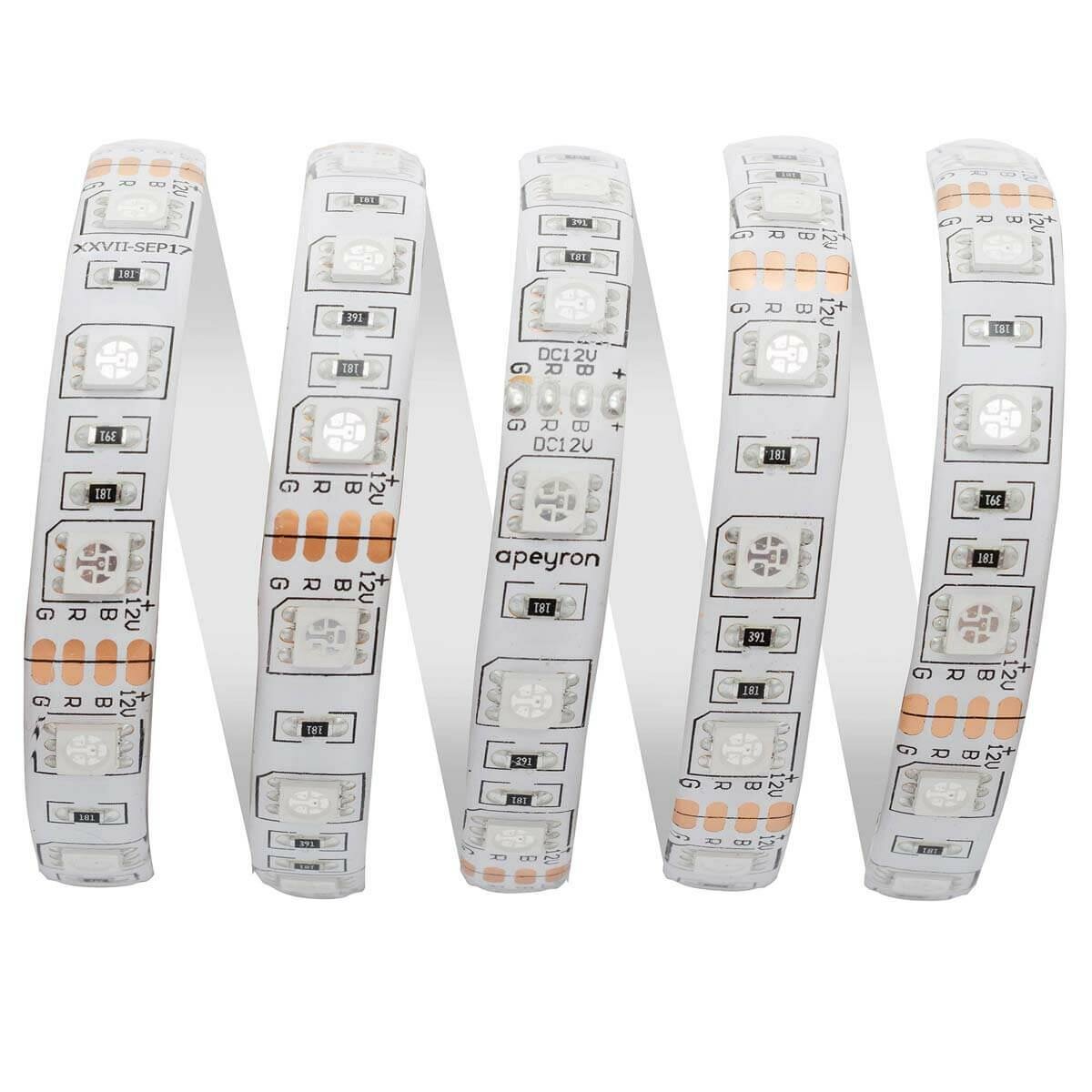 Яркая светодиодная лента в блистере Apeyron 320BL с напряжением 12В, RBG, 60д/м / 10Вт/м / smd5050 / IP65 / длина 2 метров, ширина подложки 10 мм / гарантия 1 год