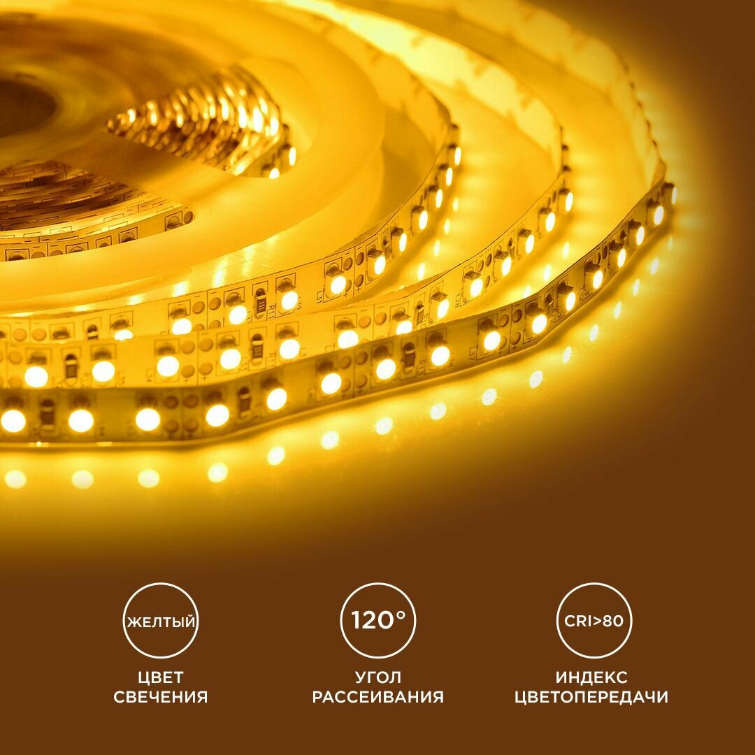 Купить Яркая светодиодная лента в блистере с напряжением 12В, обладает желтым цветом свечения, угол излучения 120 градусов/ 60д/м / 4,8Вт/м / smd3528 / IP20 / длина 5 метров, ширина 8 мм / гарантия 1 год