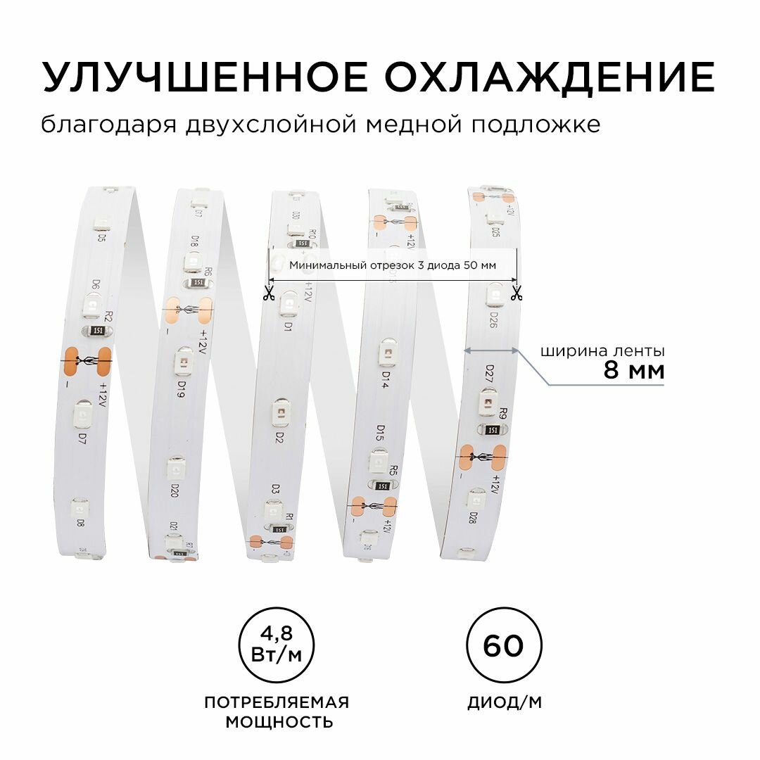 Лента светодиодная APEYRON LED 60 12 В 9,6 Вт IP20 4000 К 257BL