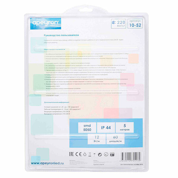 Ниже Вы можете прочитать отзывы на Комплект светодиодной ленты Apeyron 220В, smd5050, 60 д/м, IP44, RGB, ознакомится с подробными характеристиками, посмотреть интересные обзоры и фотографии на Комплект светодиодной ленты Apeyron 220В, smd5050, 60 д/м, IP44, RGB.