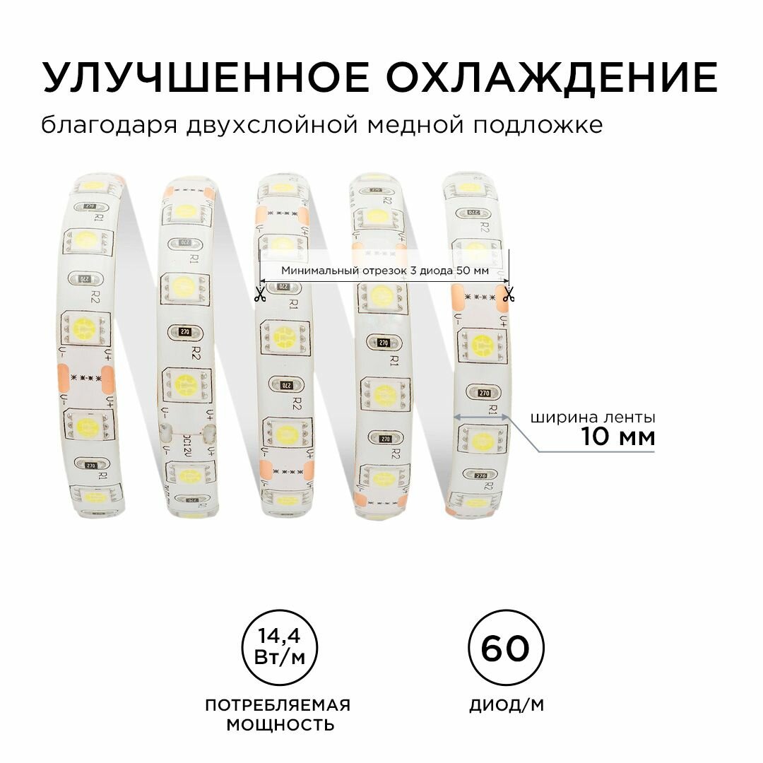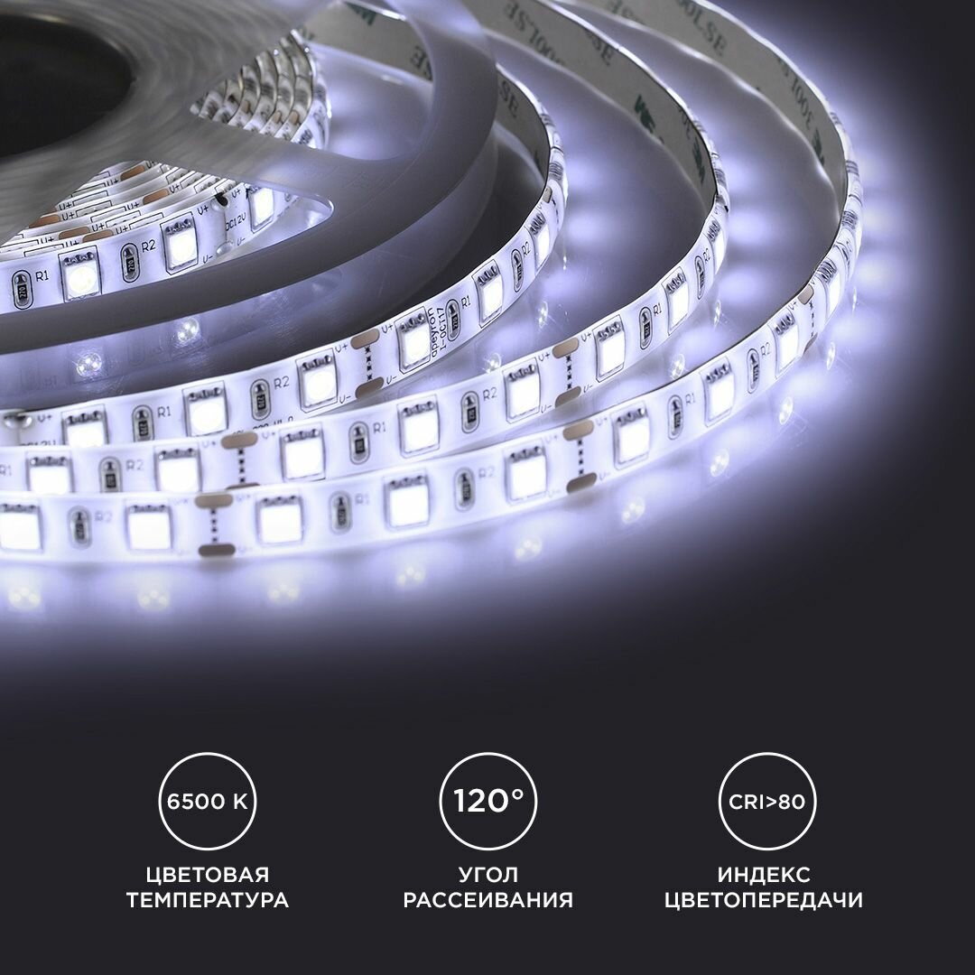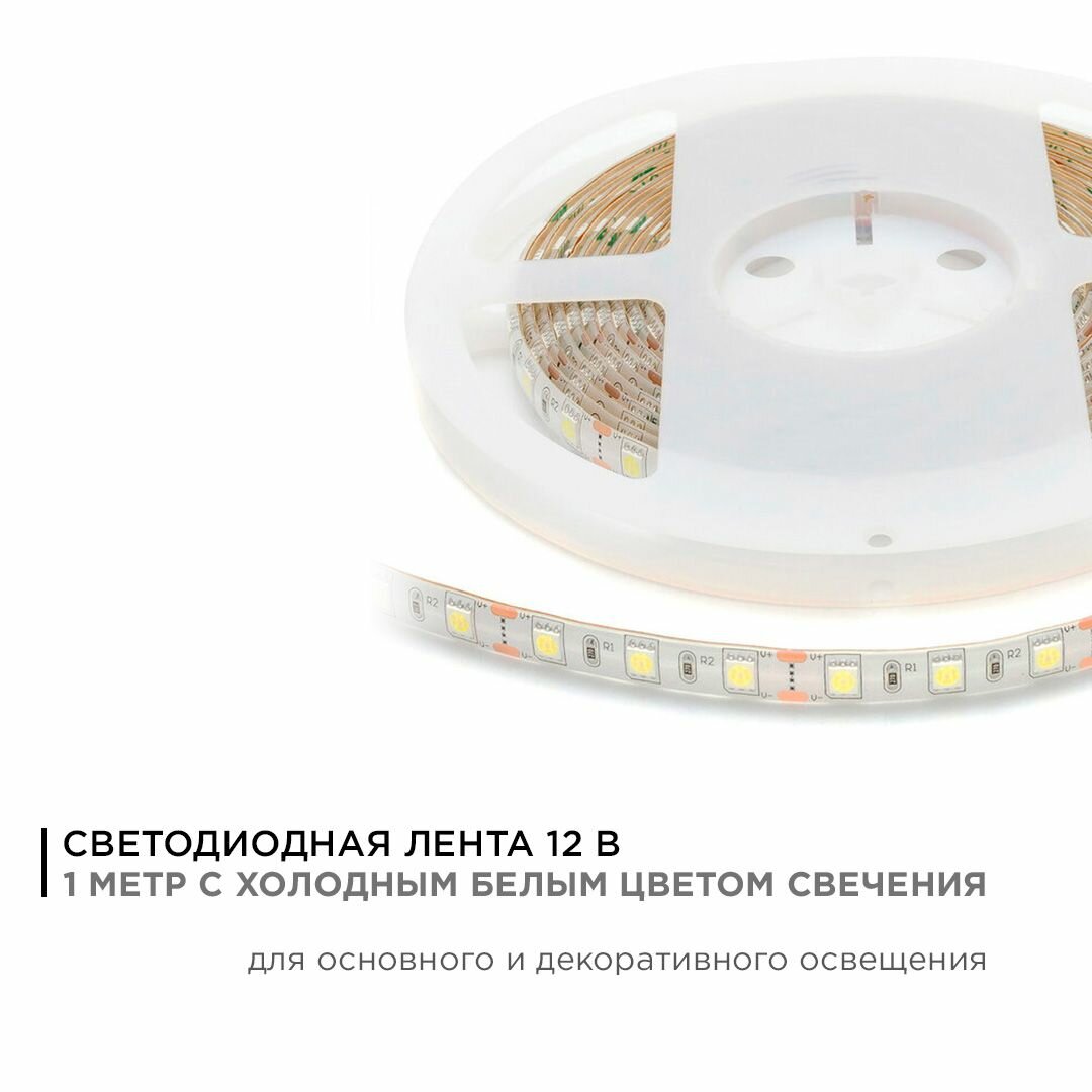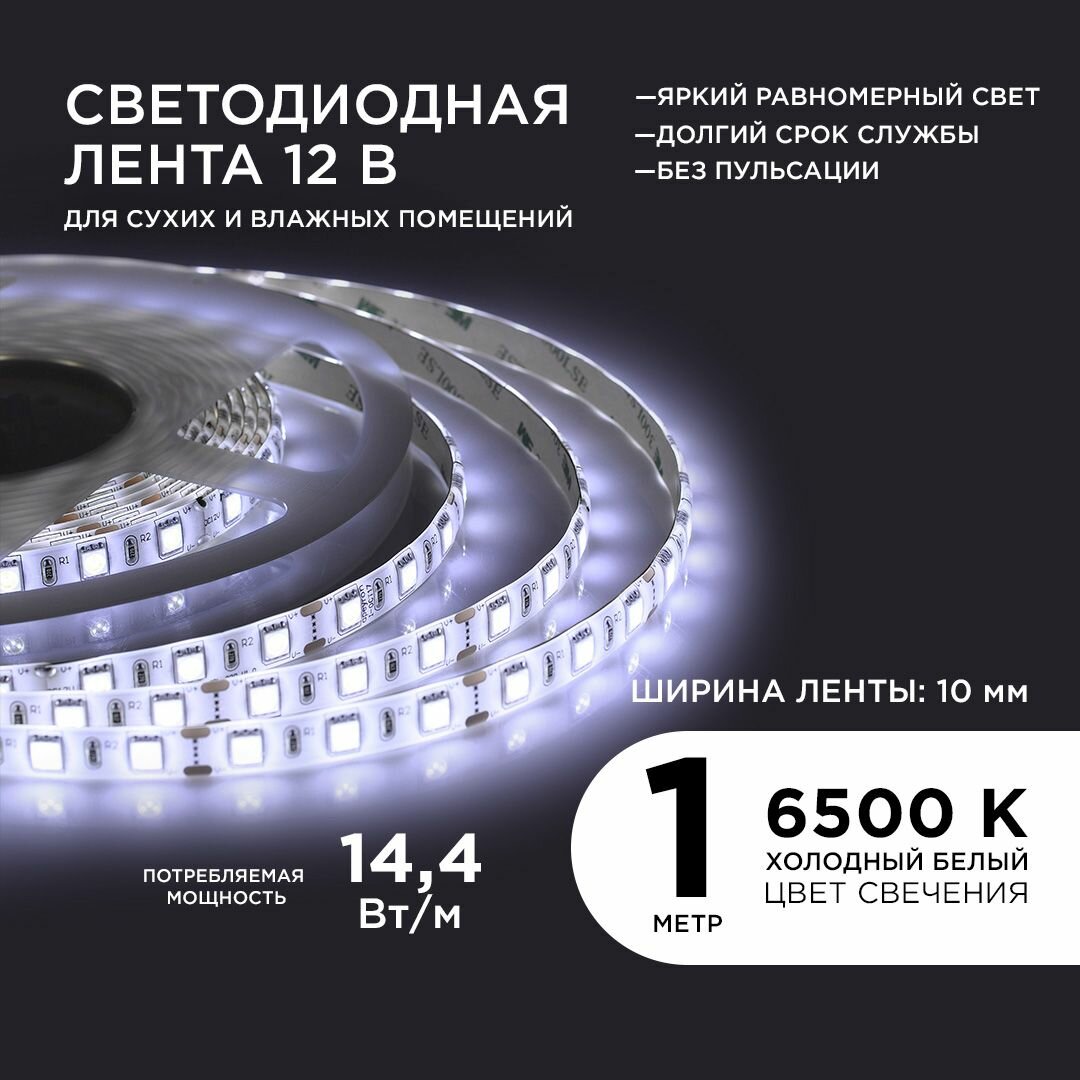 Светодиодная лента в блистере 12В, 14,4Вт/м, smd5050, 60д/м, IP65, 700Лм/м, 1 м, х/б, 6500К. интересное: