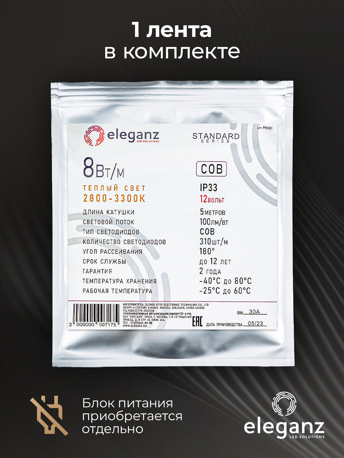 СохранитьСветодиодная лента СОВ Standard "Eleganz 12В" на самоклеящейся основе, 8 Вт , 310 LED, IP33 Теплый белый свет. Лента 5м интересное: