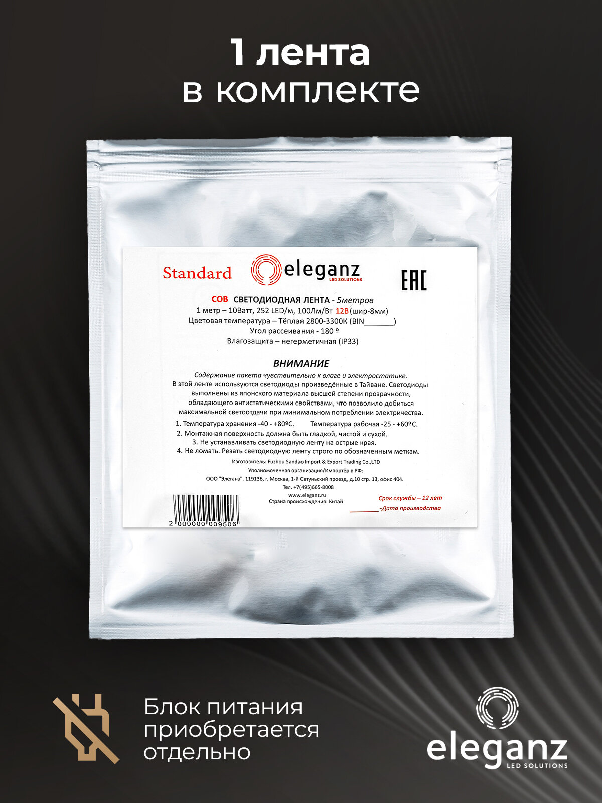 СохранитьСветодиодная лента СОВ Standard "Eleganz 12В" на самоклеящейся основе, 10 Вт , 252 LED, IP33 Теплый белый свет. Лента 5м интересное: