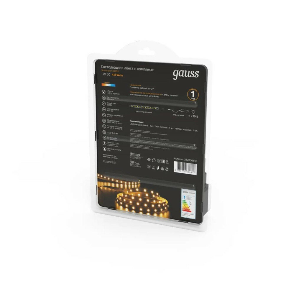 Светодиодная лента Gauss LED Комплект 2835/60-SMD 4,8W 12V DC теплый белый IP20 (блистер 3м) 1/50 интересное: