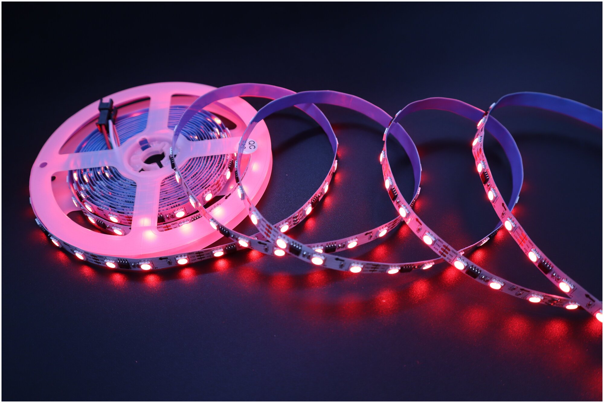 Купить Комплект светодиодной ленты 5 метров 14W, 12V SPI RGB - Бегущий огонь с контроллером (с функцией аудиоконтроллера), управление с телефона