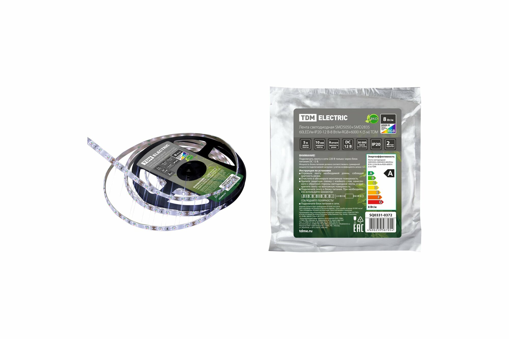 Лента светодиодная SMD5050+SMD2835 60LED/м-IP20-12 В-8 Вт/м-RGB+6000 К (5 м) TDM интересное: