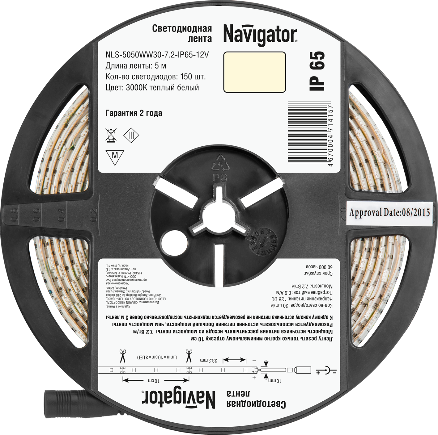 Купить СД Лента Navigator 71 415 NLS-5050WW30-7.2-IP65-12V 5м, 3000К