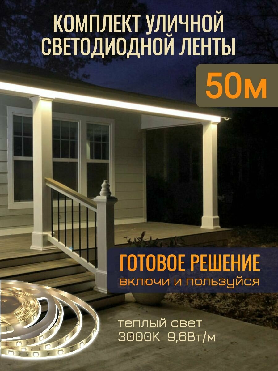 Купить Комплект уличной светодиодной ленты SMD 2835-120д/м 9,6Вт 3000K IP67 220В 50м