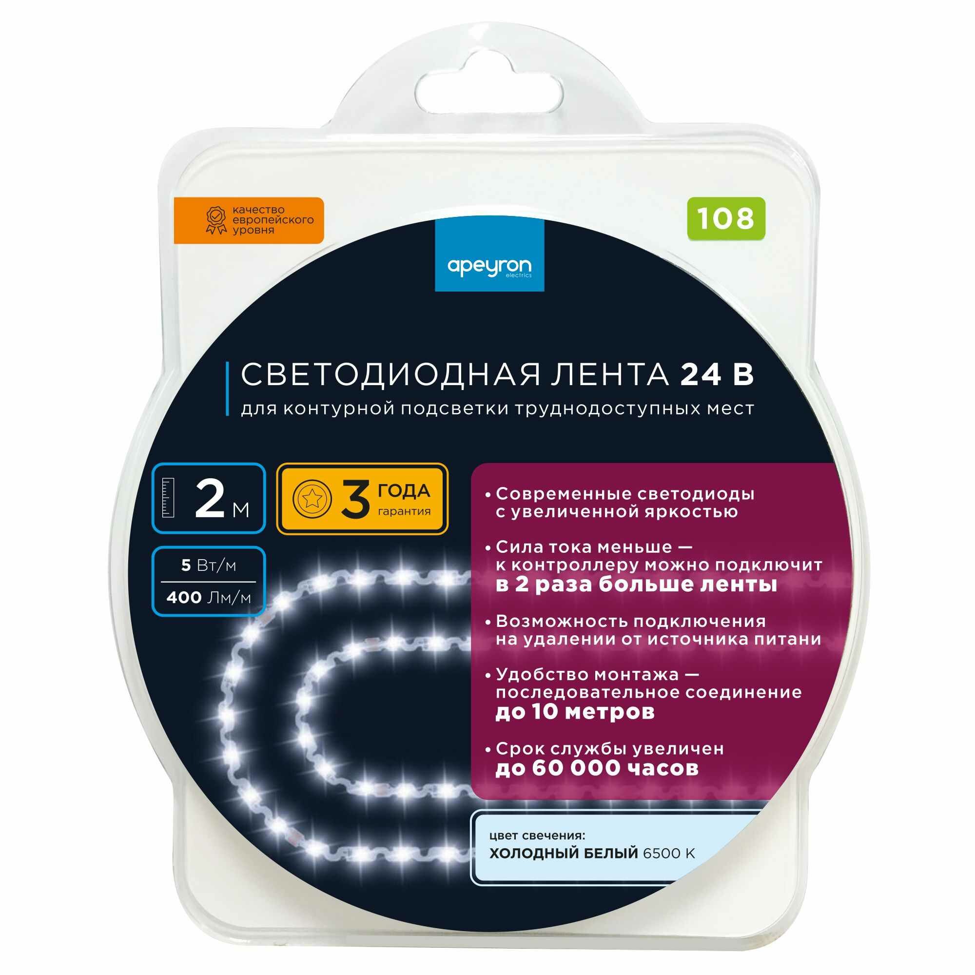 Светодиодная лента для труднодоступных мест SMD 2835 60 диод/5 Вт/м 24 В 10 мм IP20 2 м холодный белый свет интересное: