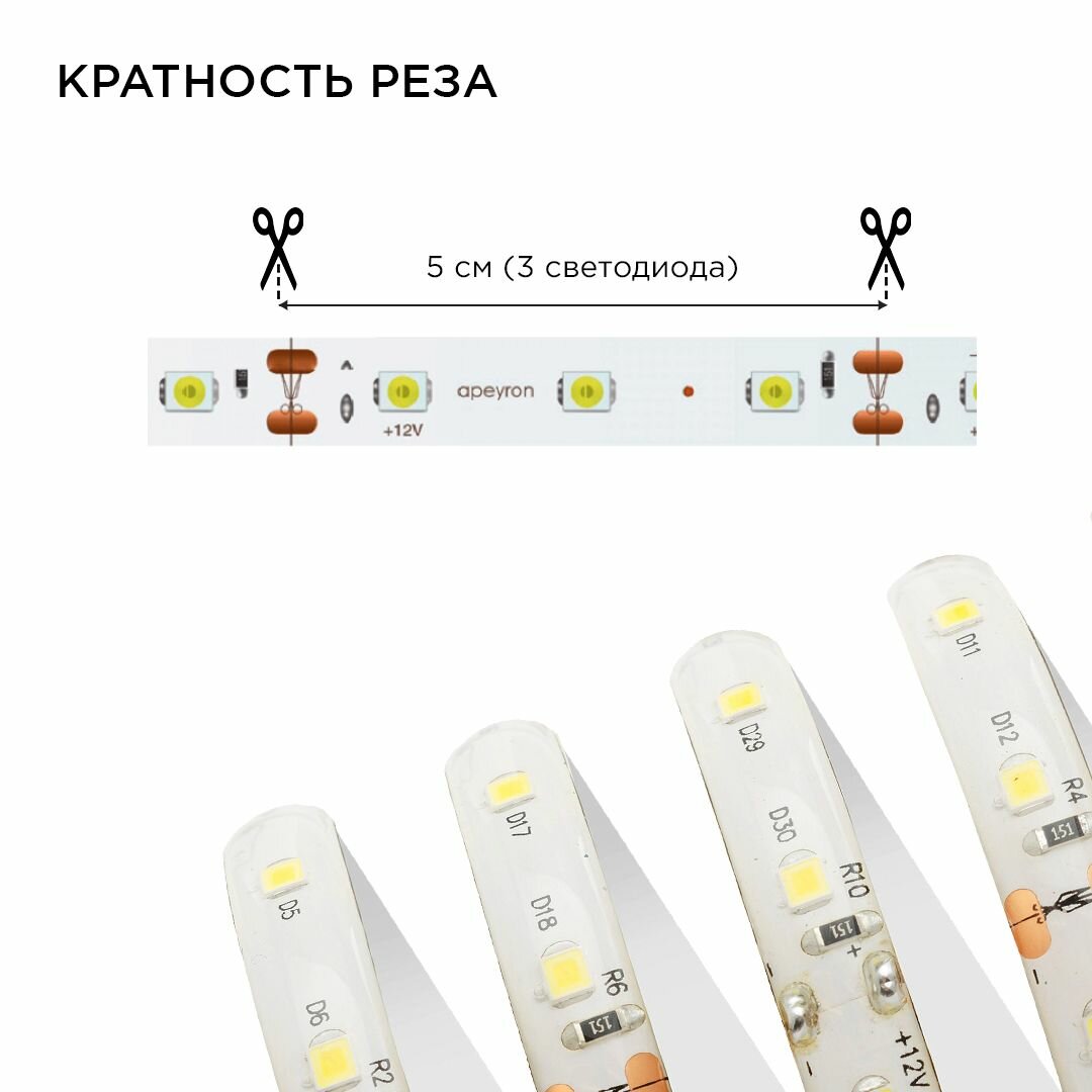 Светодиодная лента 12В / холодная / led-подсветка / кухни / беседки / комплект / 2,5 метра