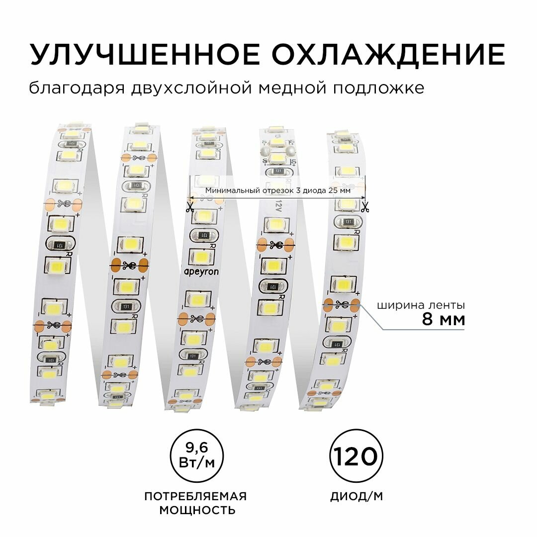 Светодиодная лента для контурной подсветки SMD 3528 60 диод/5 Вт/м 24 В 8 мм IP20 3 м холодный белый свет