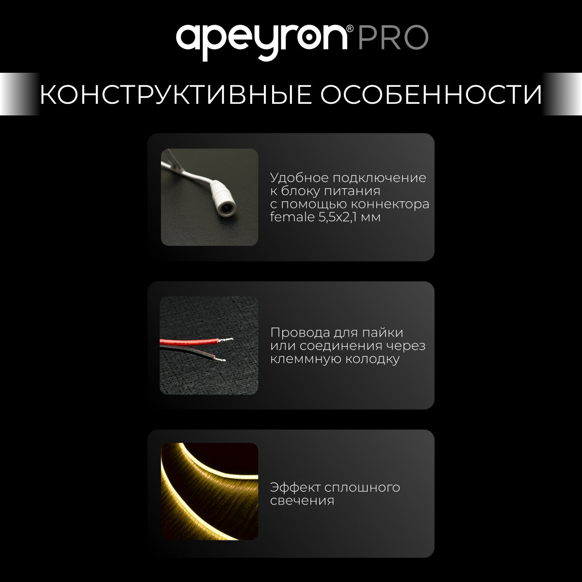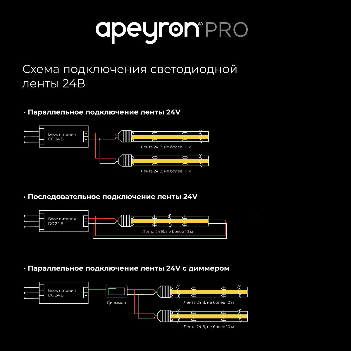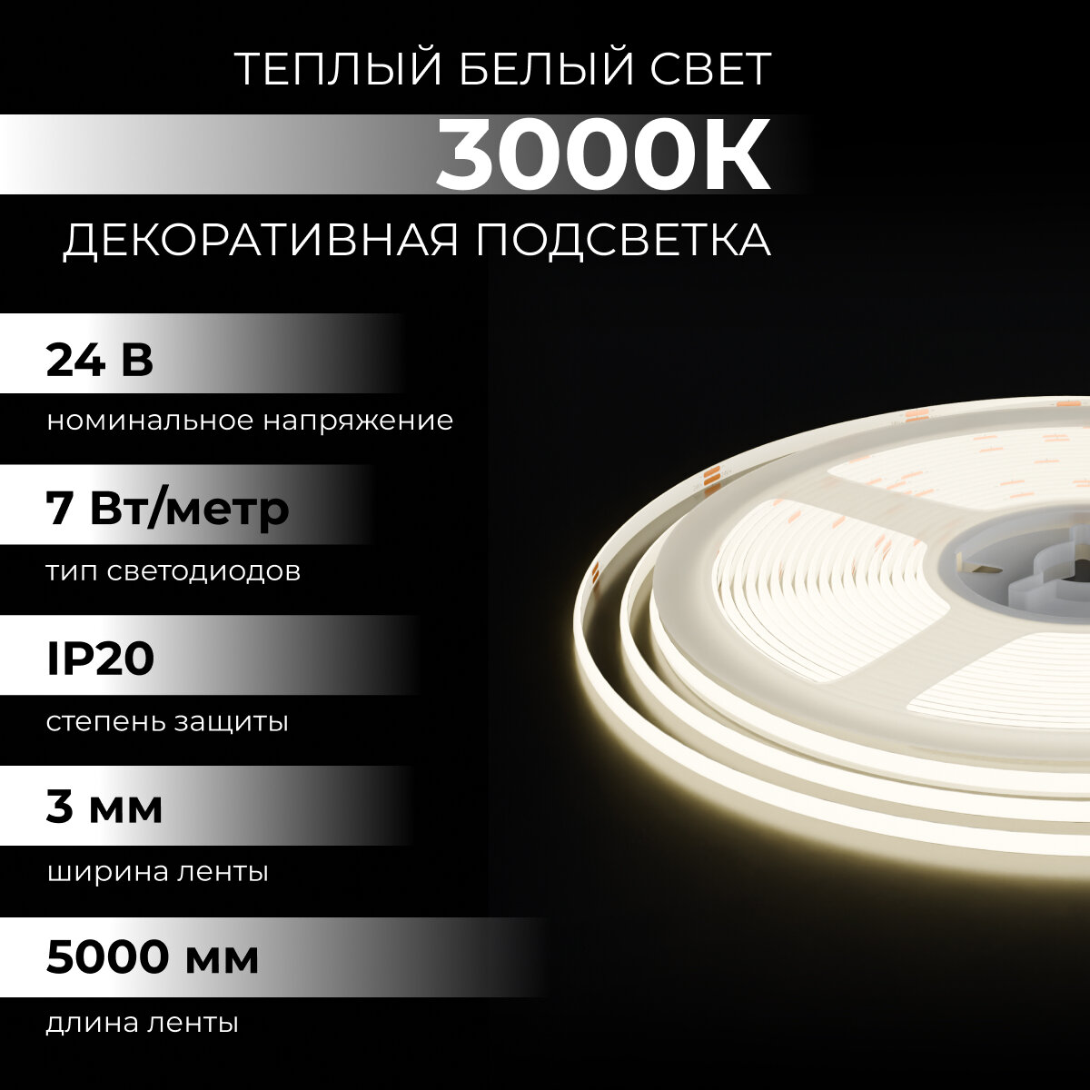 Светодиодная лента Apeyron 00-379 COB, 24В, 4000K, IP20, ширина подложки 3мм, длина 5м, CRI90+ интересное: