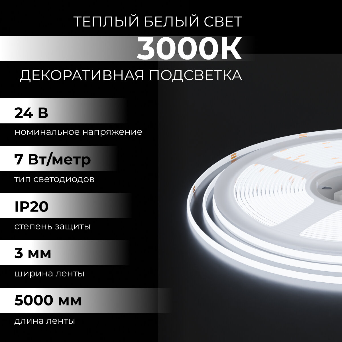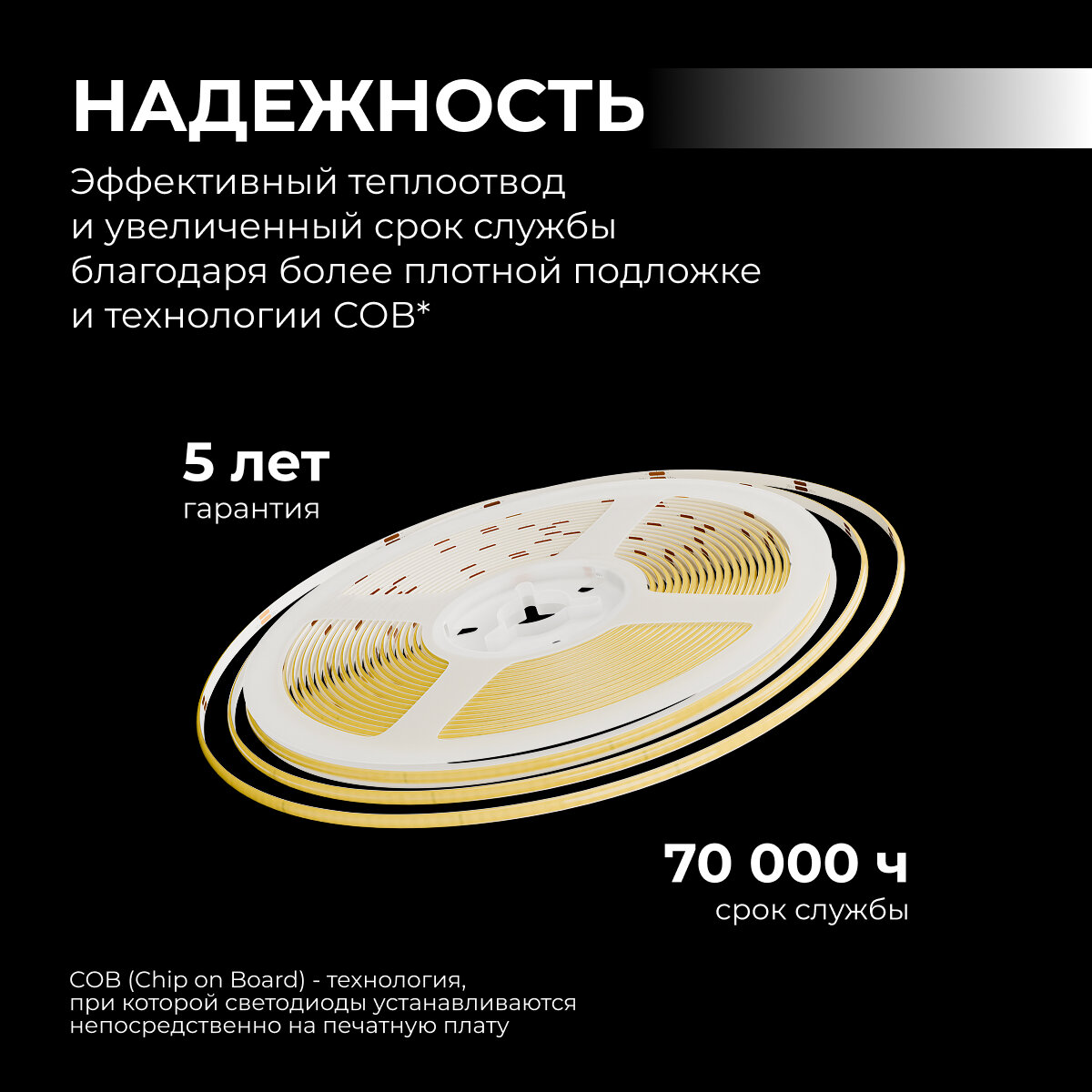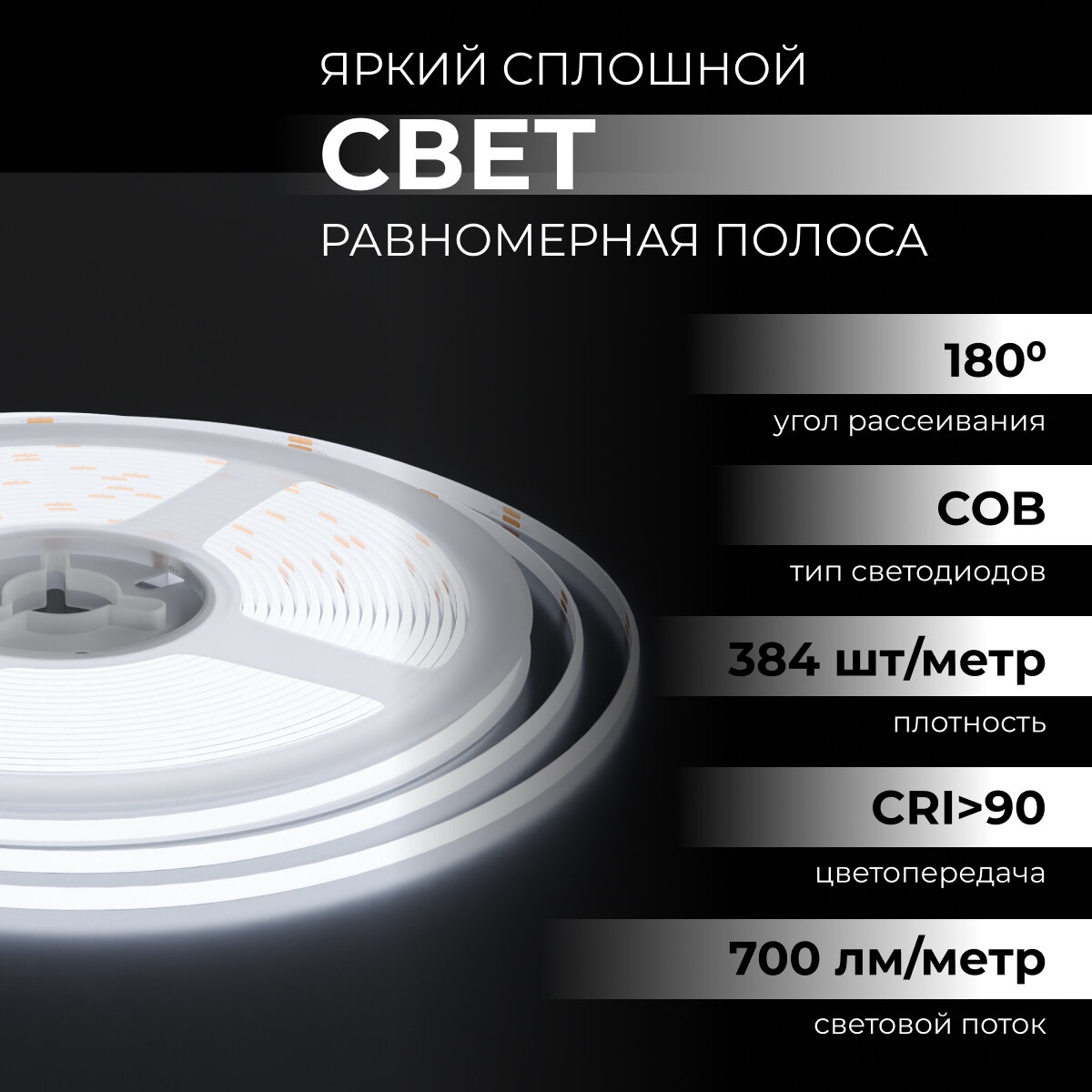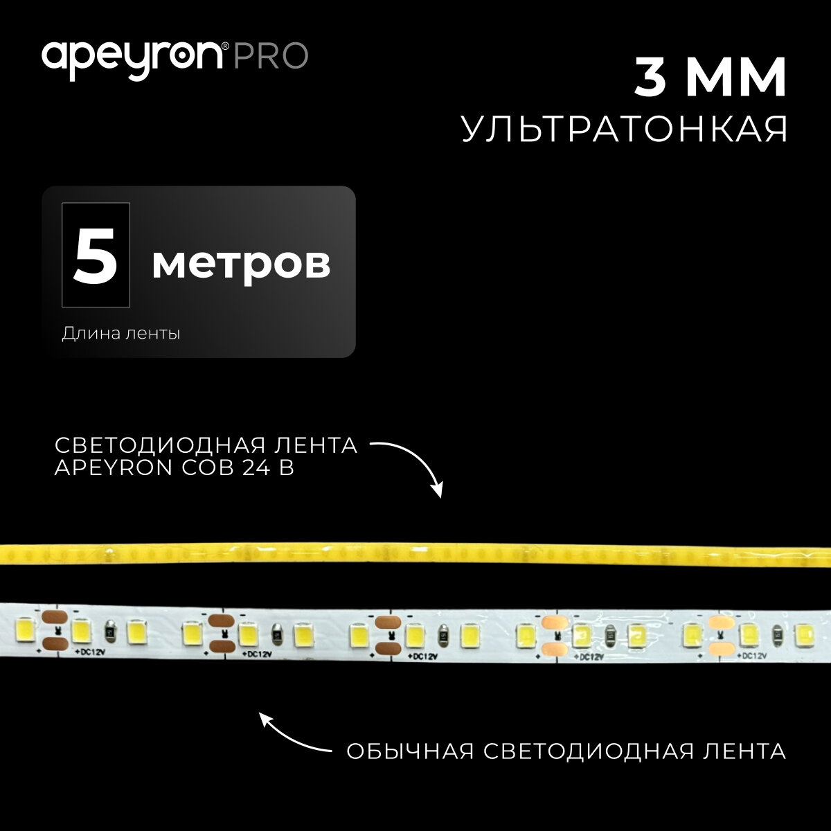 Светодиодная лента Apeyron 00-380 COB, 24В, 6500K, IP20, ширина подложки 3мм, длина 5м, CRI90+ интересное: