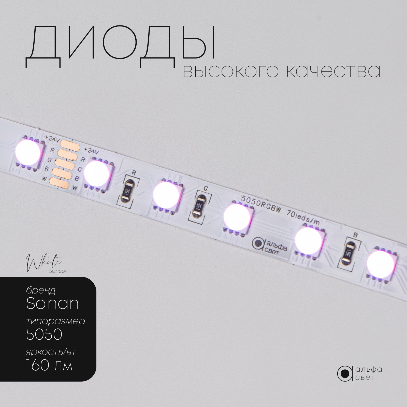 Светодиодная лента RGBW, 14Вт, 24В, премиум, IP20, 5 метров, Альфа Свет интересное: