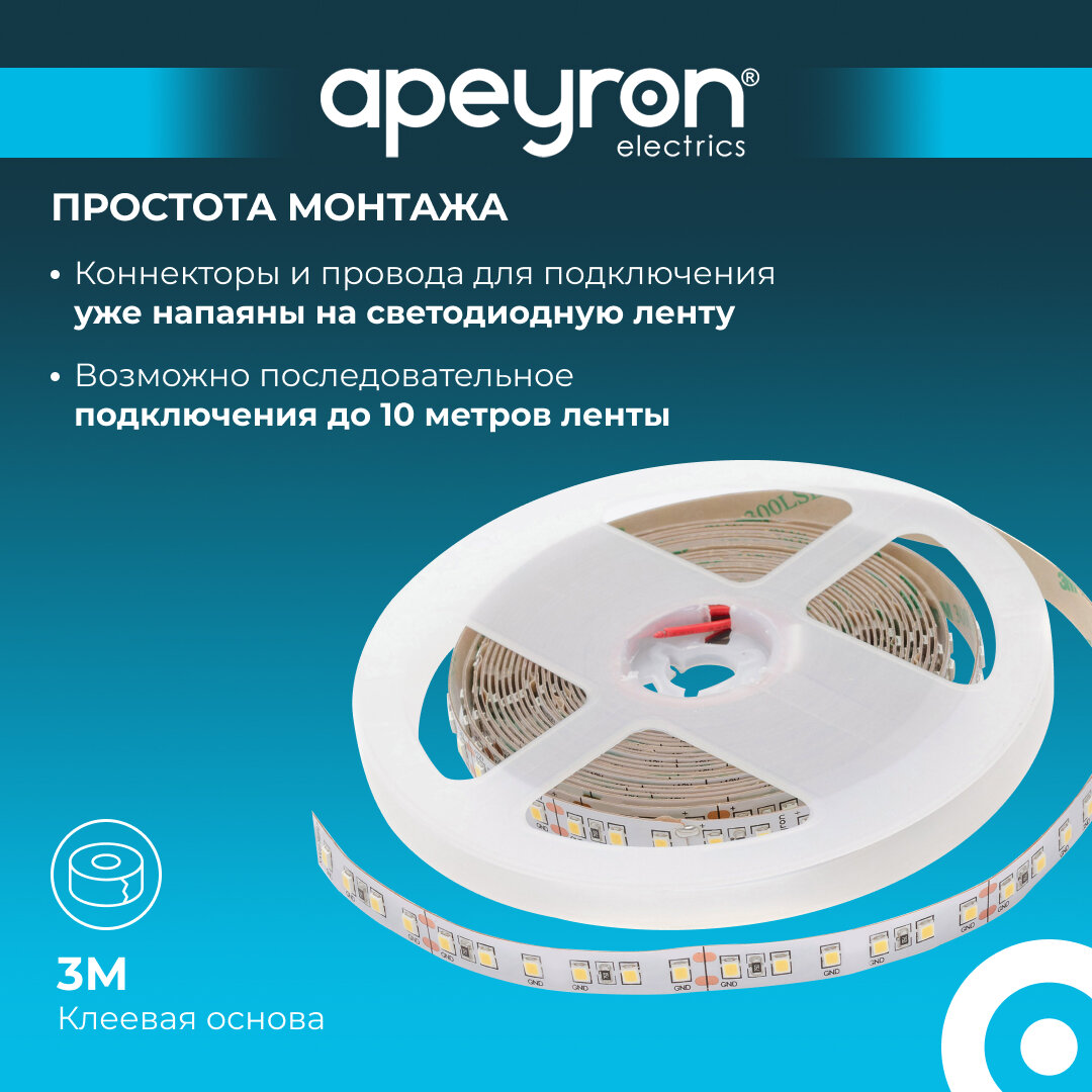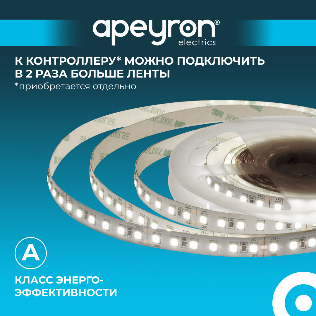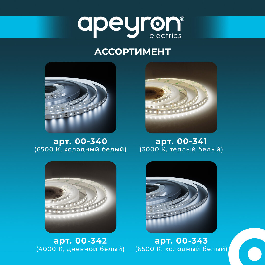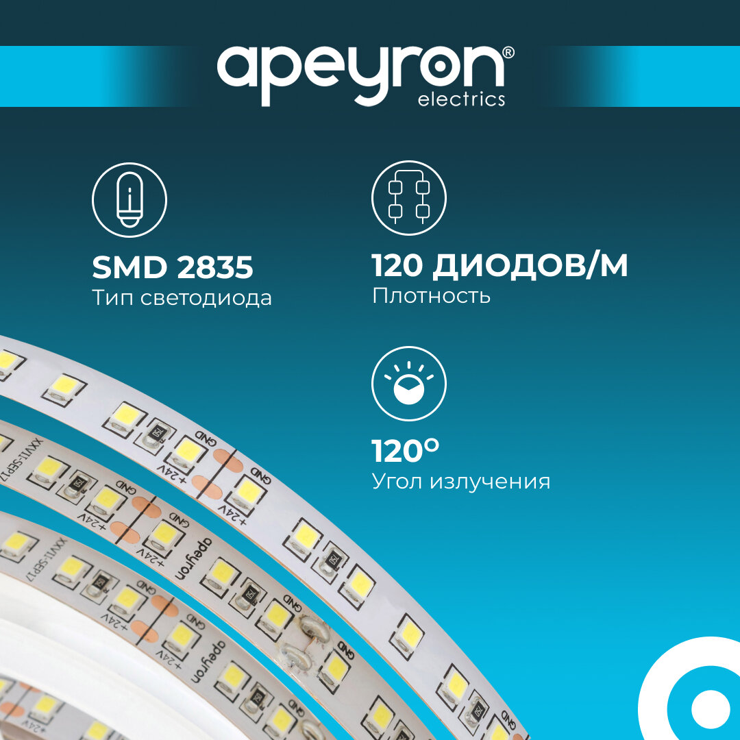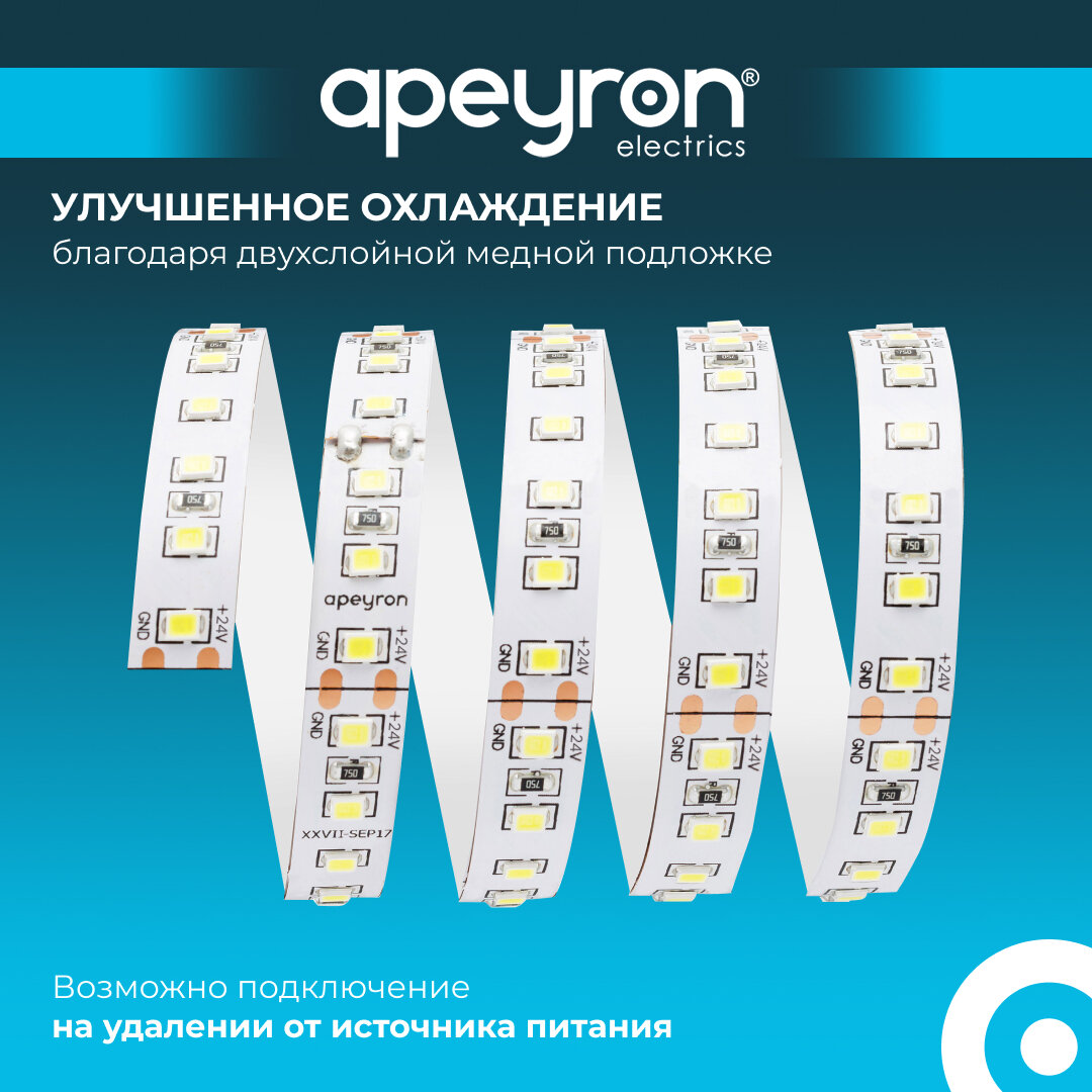 Купить Яркая светодиодная лента Apeyron 00-342 24В, обладает белым цветом 4000K, 1500 Лм/м, 120д/м, 16Вт/м, smd2835, IP20, 5 м, подложки 10 мм