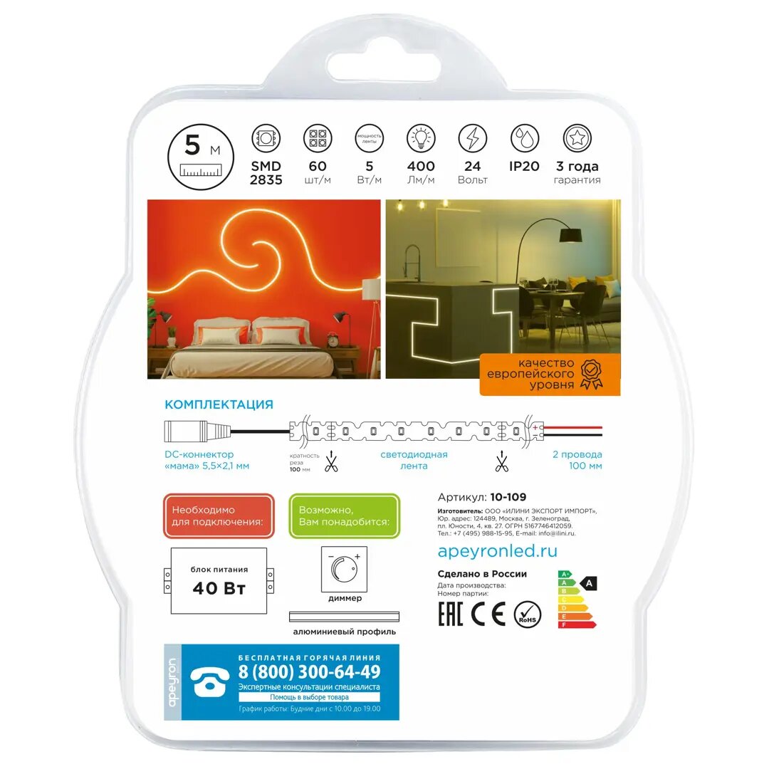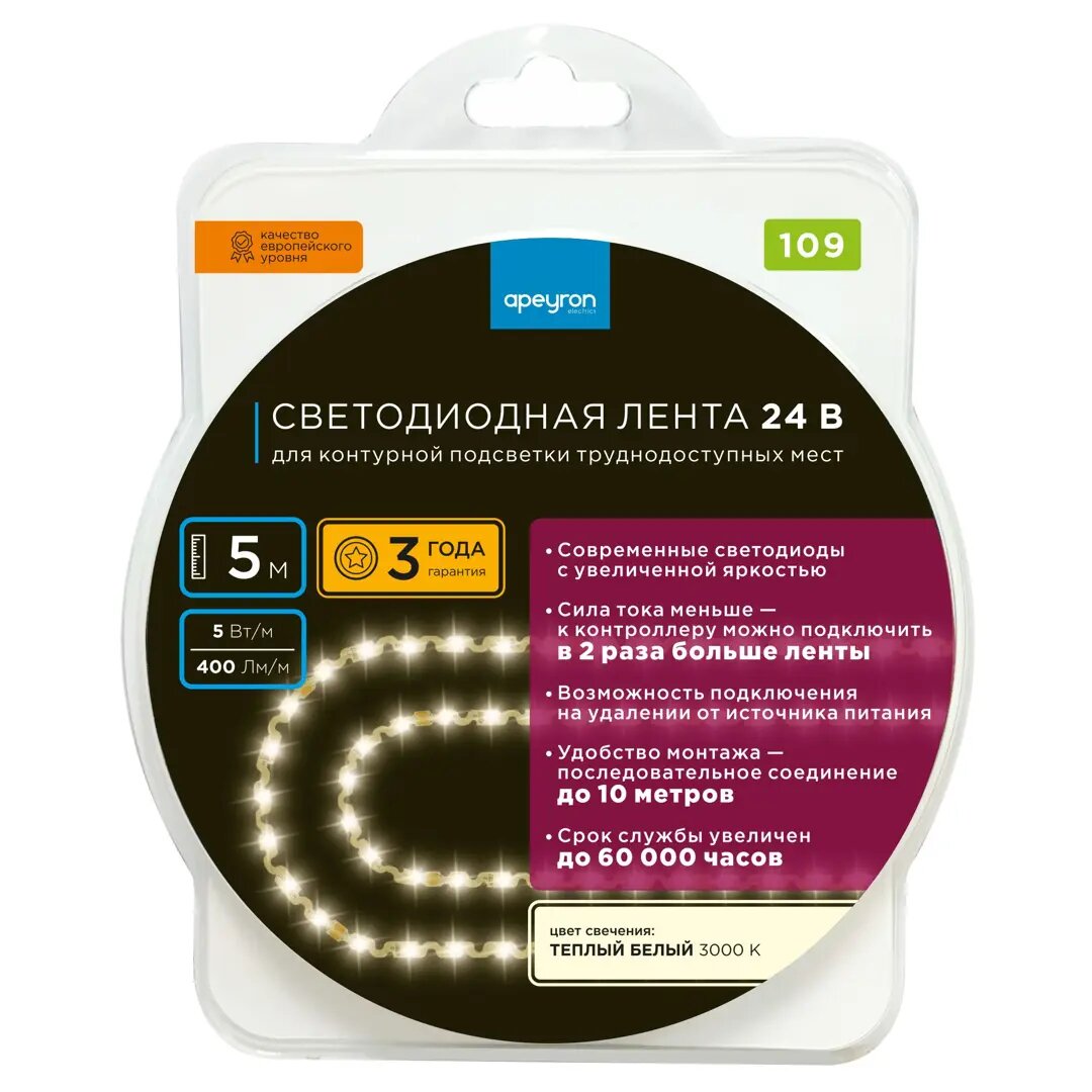 Светодиодная лента для труднодоступных мест SMD 2835 60 диод/5 Вт/м 24 В 10 мм IP20 5 м теплый белый свет интересное: