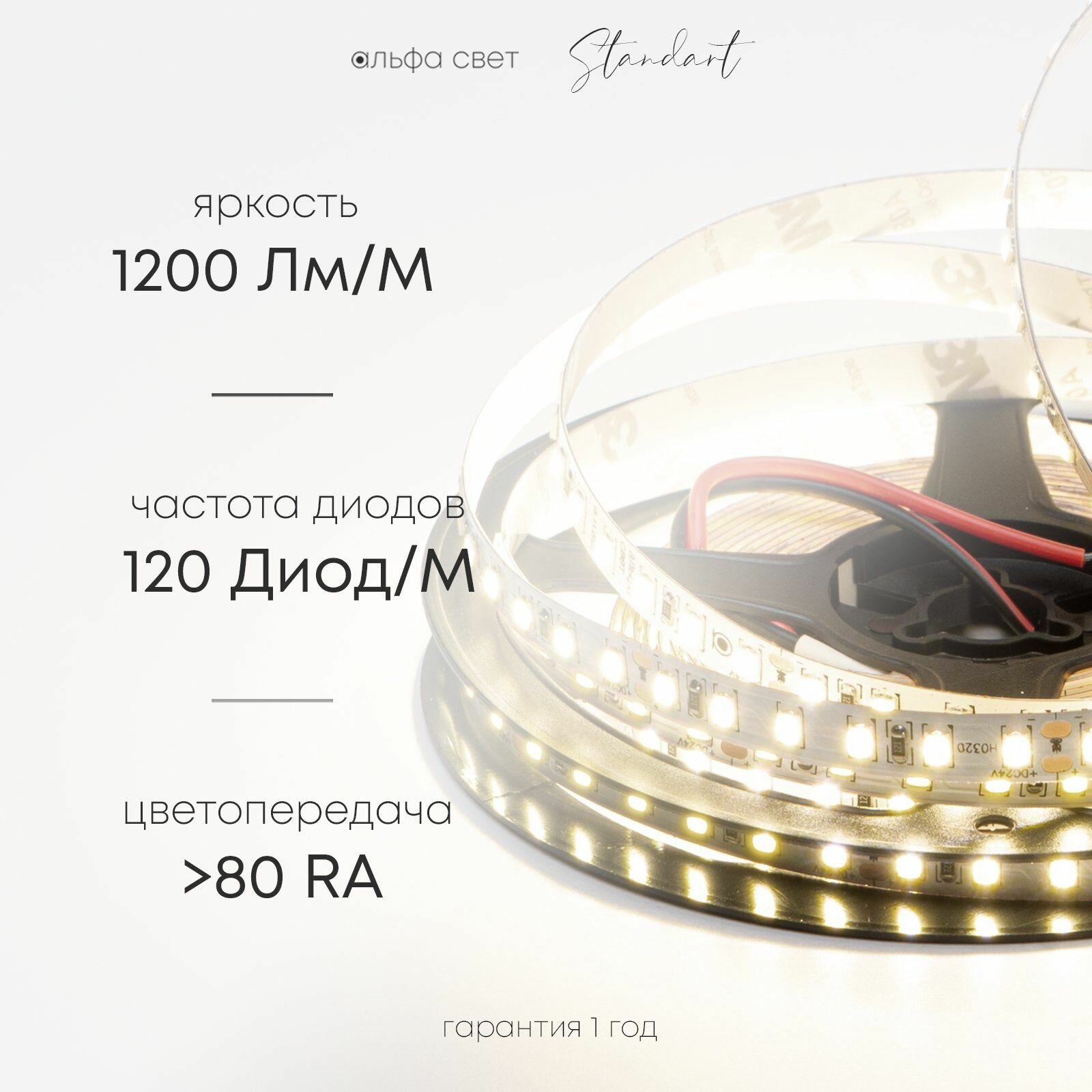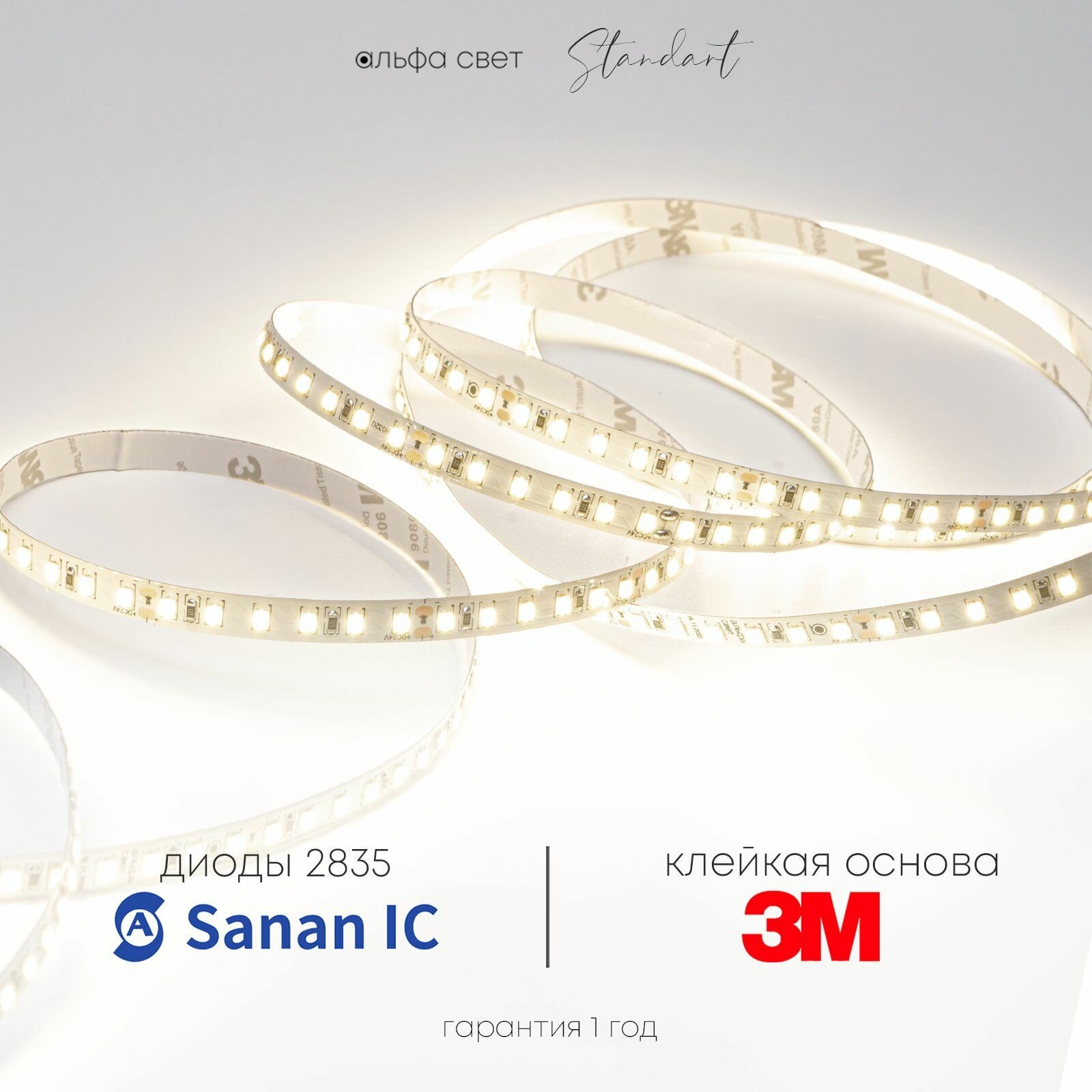 Светодиодная лента 12Вт, 24В, 3000К (тёплый свет), 1200 лм/м, IP20, 5 метров, Альфа Свет
