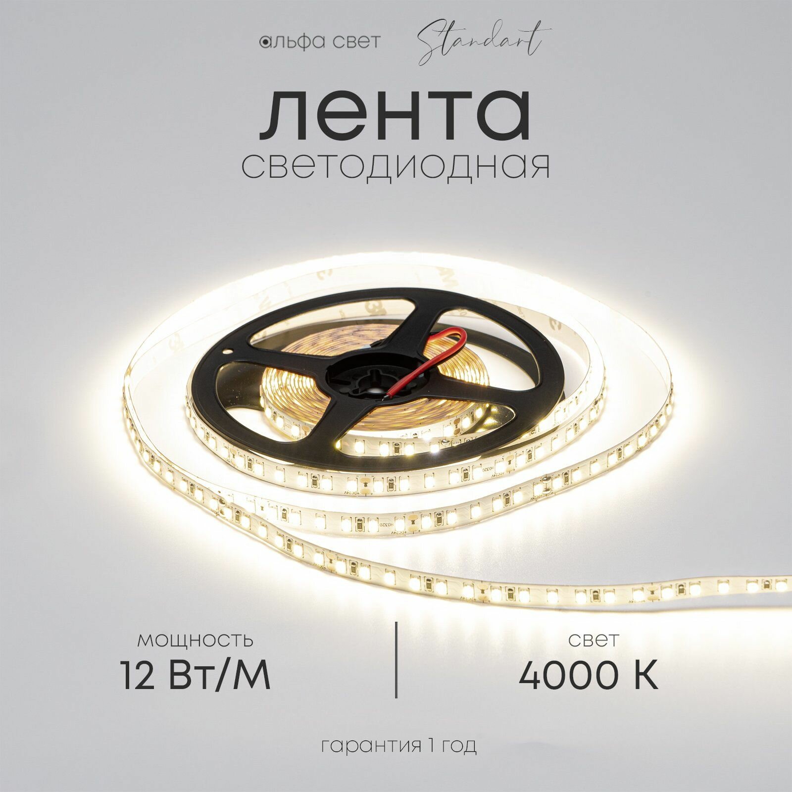 Купить Светодиодная лента 12Вт, 24В, 4000К (дневной свет), 1200 лм/м, IP20, 5 метров, Альфа Свет