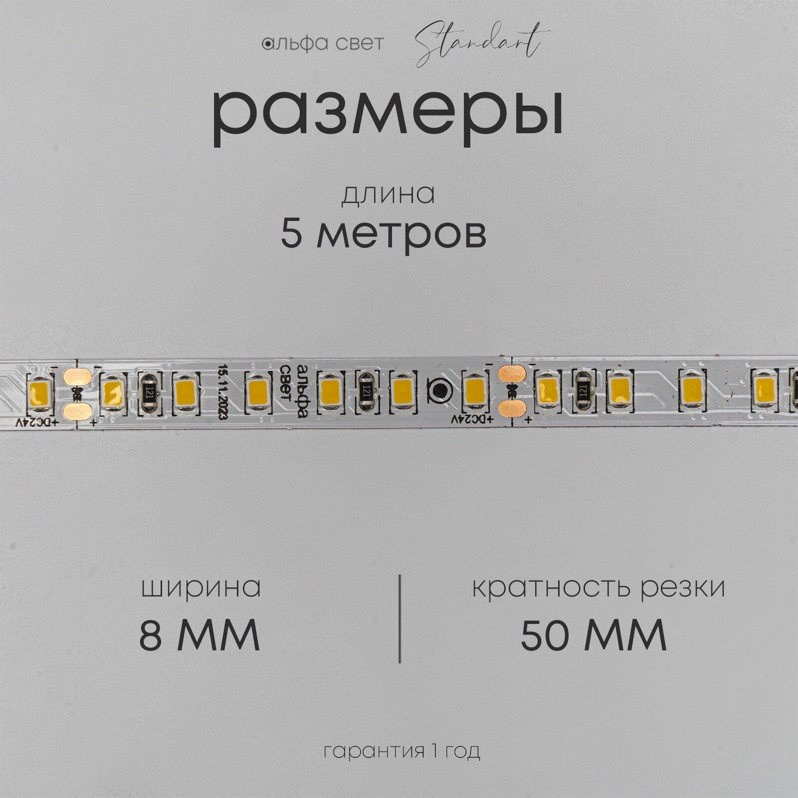 Светодиодная лента 24Вт, 24В, 3000К (тёплый свет), 2800 лм/м, IP20, 5 метров, Альфа Свет