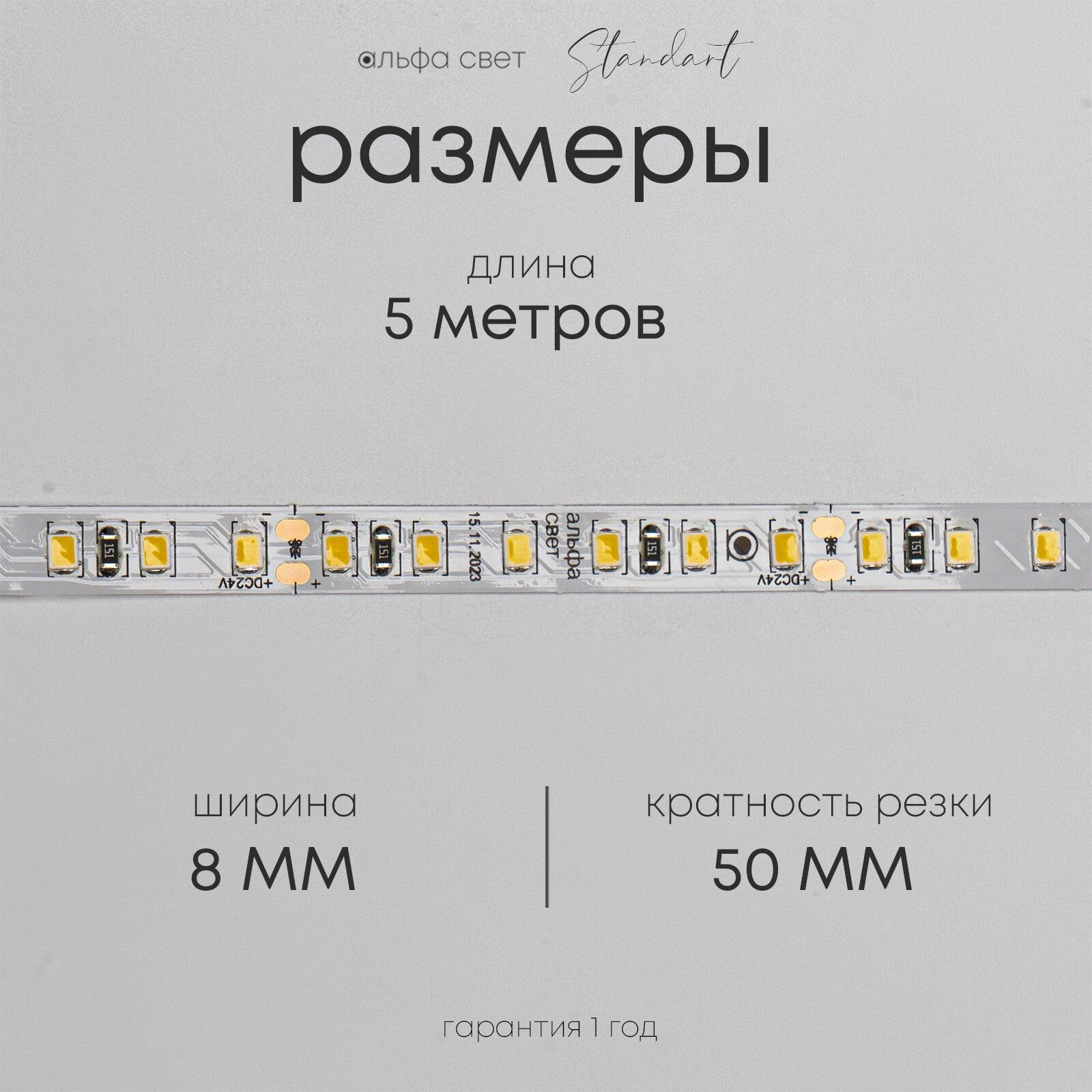 Светодиодная лента 24Вт, 24В, 3000К (тёплый свет), 2800 лм/м, IP20, 5 метров, Альфа Свет