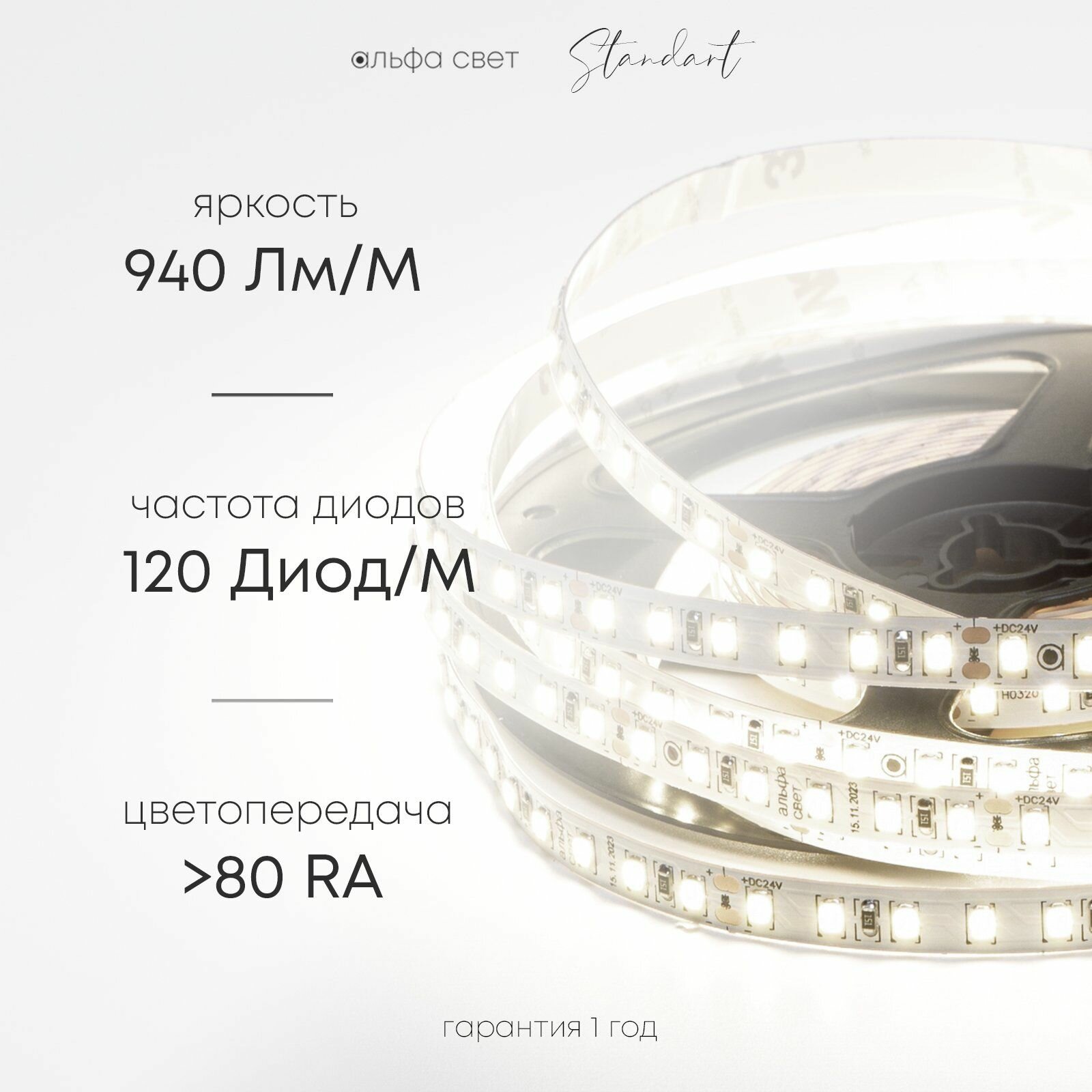 Светодиодная лента 12Вт, 24В, 4000К (дневной свет), 1200 лм/м, IP20, 5 метров, Альфа Свет