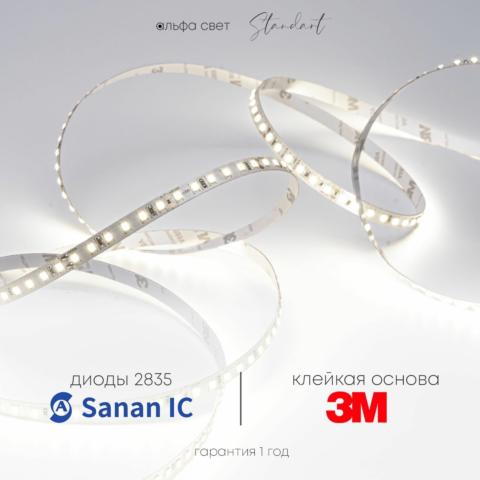 Светодиодная лента 12Вт, 24В, 3000К (тёплый свет), 1200 лм/м, IP20, 5 метров, Альфа Свет