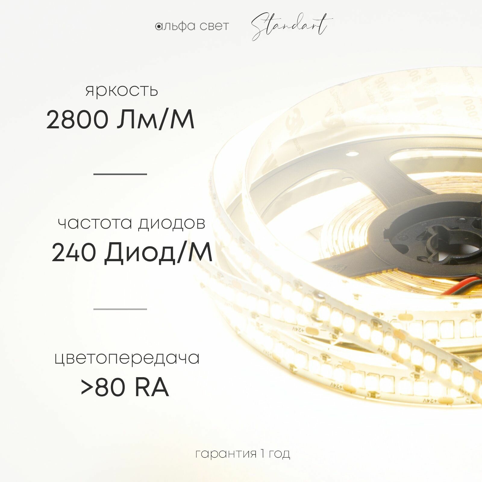 СохранитьСветодиодная лента 24Вт, 24В, 3000К (тёплый свет), 2800 лм/м, IP20, 5 метров, Альфа Свет интересное:
