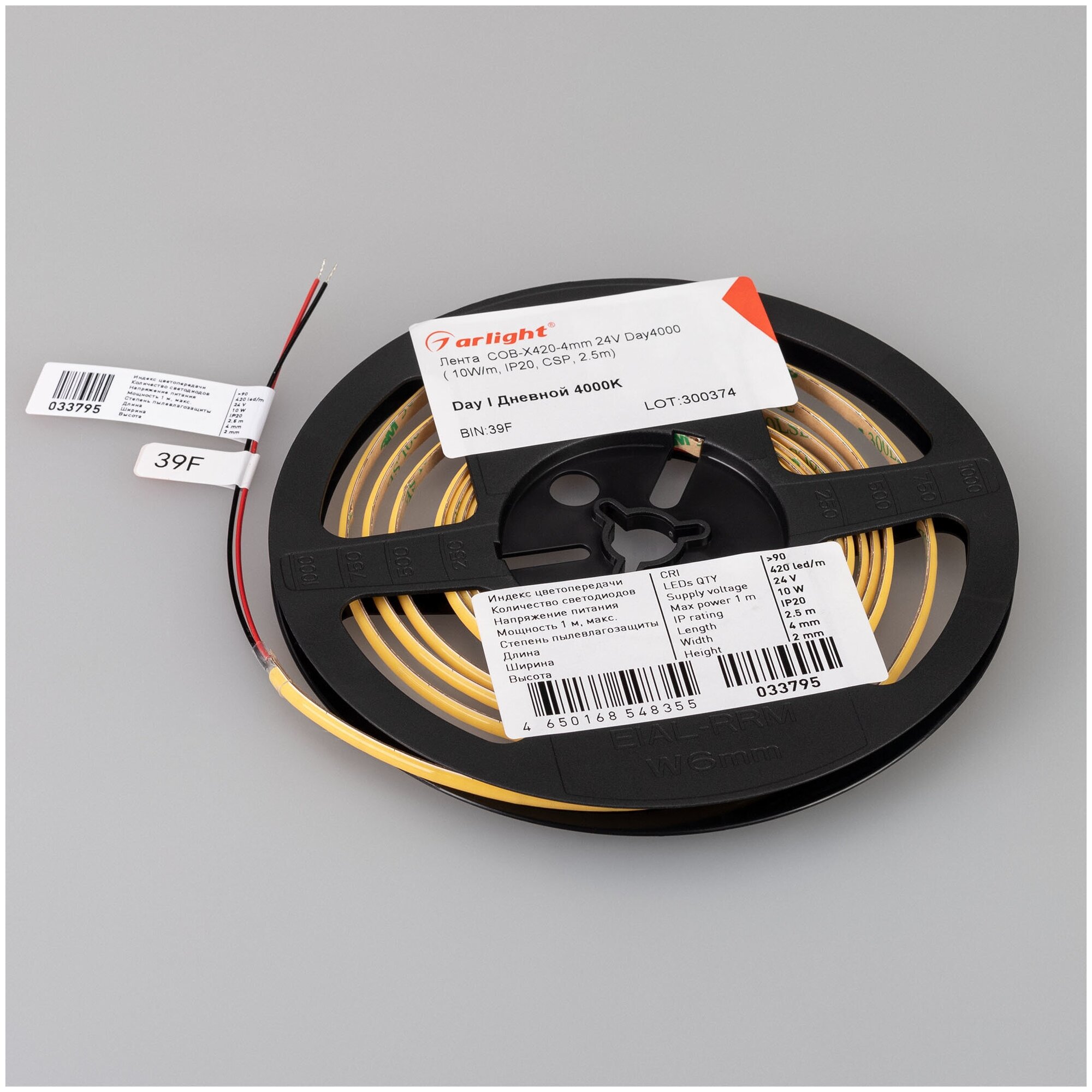 040900 Светодиодная Лента COB-X420-4mm 24V Day4000 (10 W/m, IP20, CSP, 5m) (Arlight, узкая) интересное: