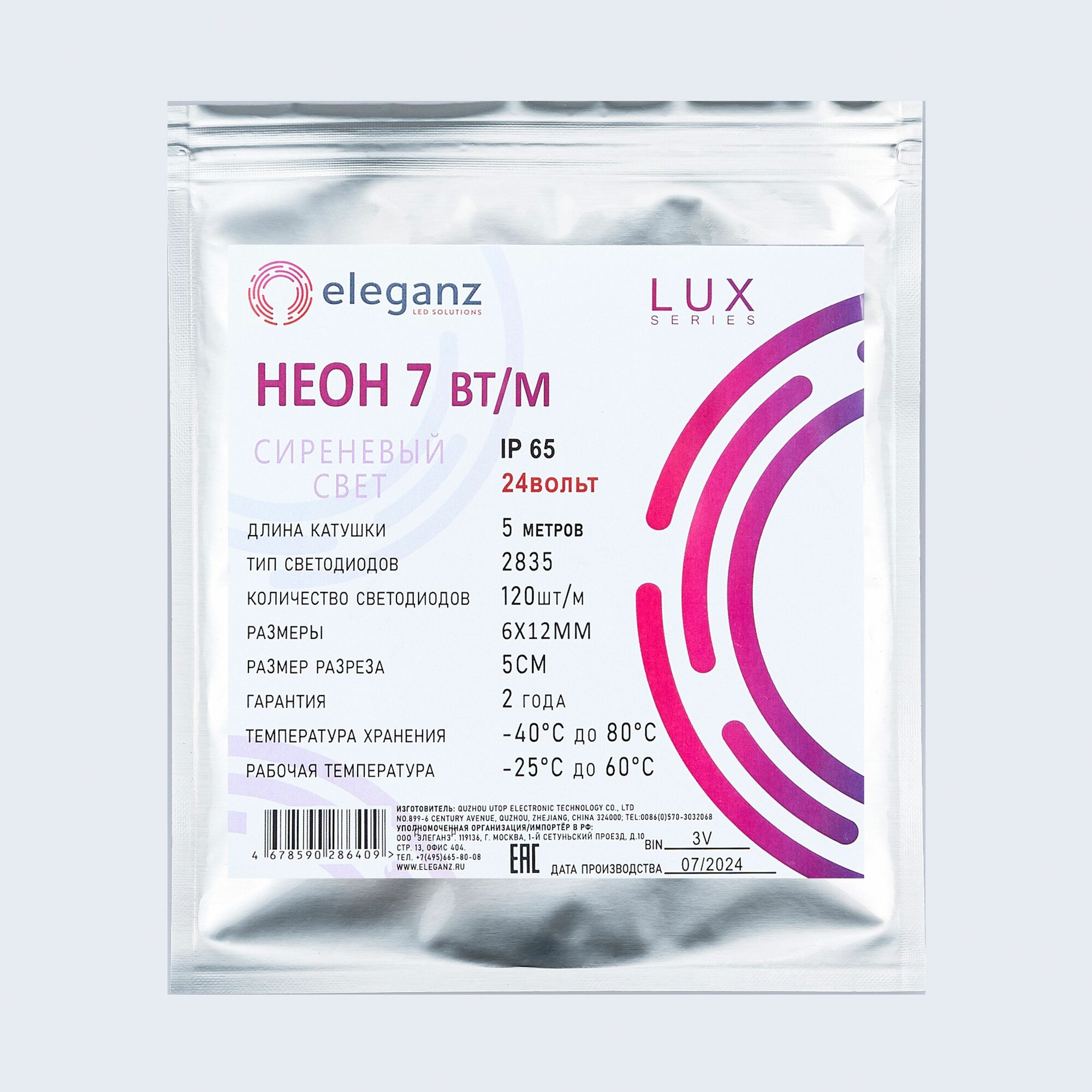 Светодиодная лента (комплект) гибкая неоновая LUX 24V "Eleganz" 7 Вт, 2835, 120 LED, IP65 Фиолетовый свет. Лента Eleganz 10м (2шт. по 5 метров)