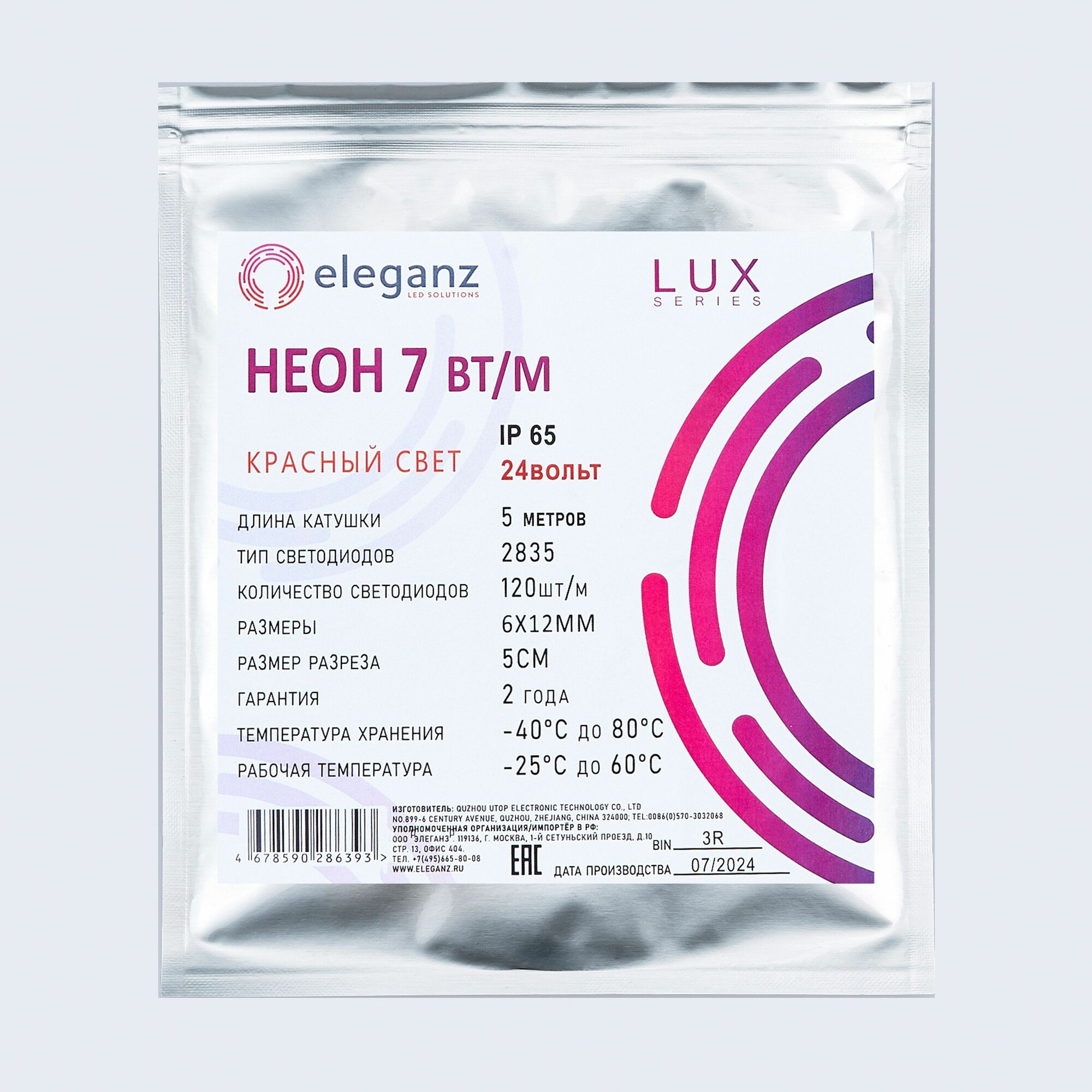 СохранитьСветодиодная лента (комплект) гибкая неоновая LUX 24V "Eleganz" 7 Вт, 2835, 120 LED, IP65 Красный свет. Лента Eleganz 15м (3шт. по 5 метров) интересное: